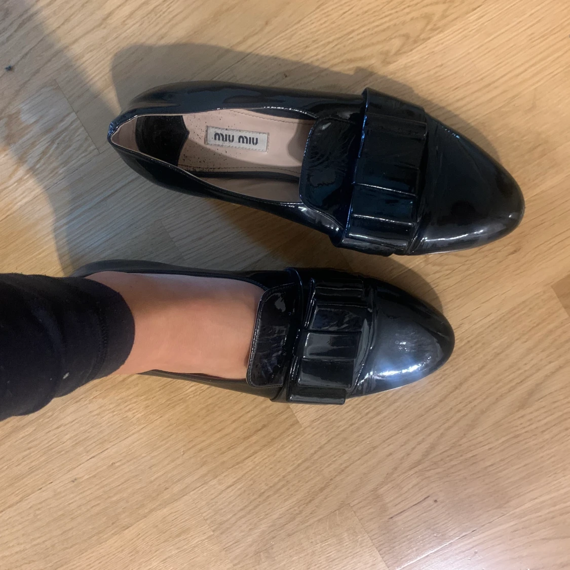 Loafers i lack läder från Miu Miu. Storlek 38.5. Fint skick endast använda fåtal gånger.