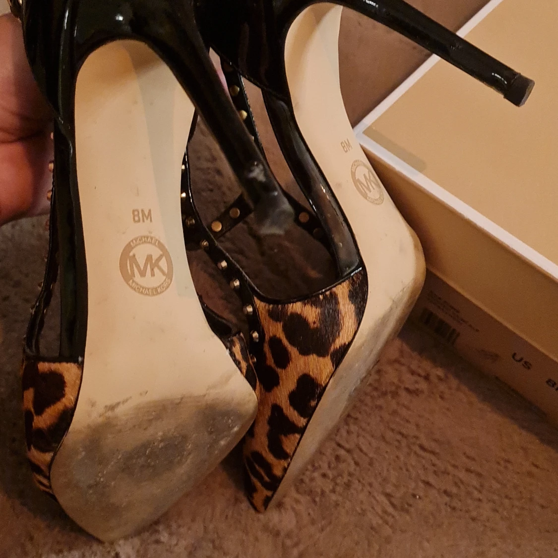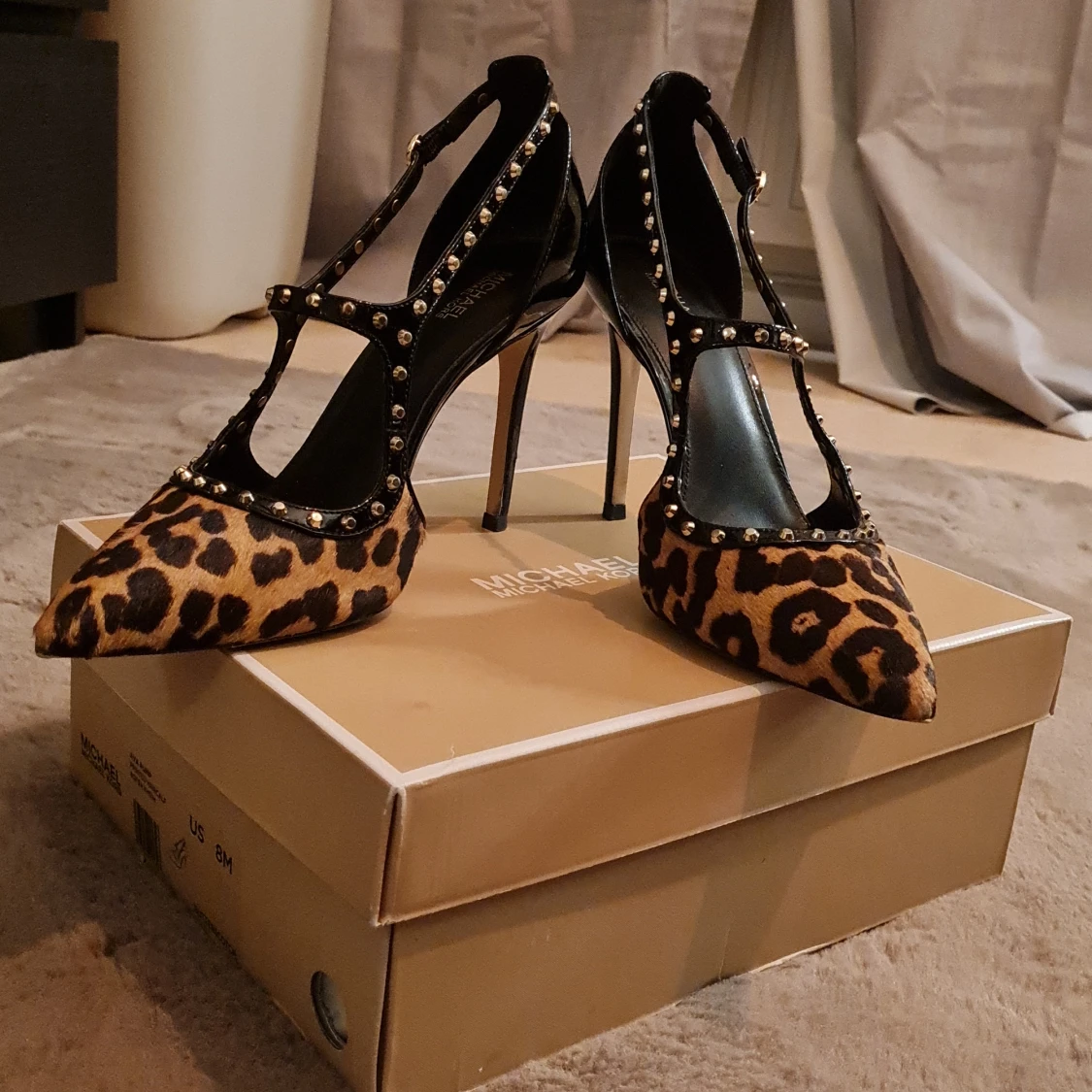 Leopard mönstrade klackar i koskinn från Michael Kors. Inte mycket använda. Finns en liten skada på ena klacken men knappt märkbart. Köptes nypris 2700 kr🖤 klacken är 10 cm.