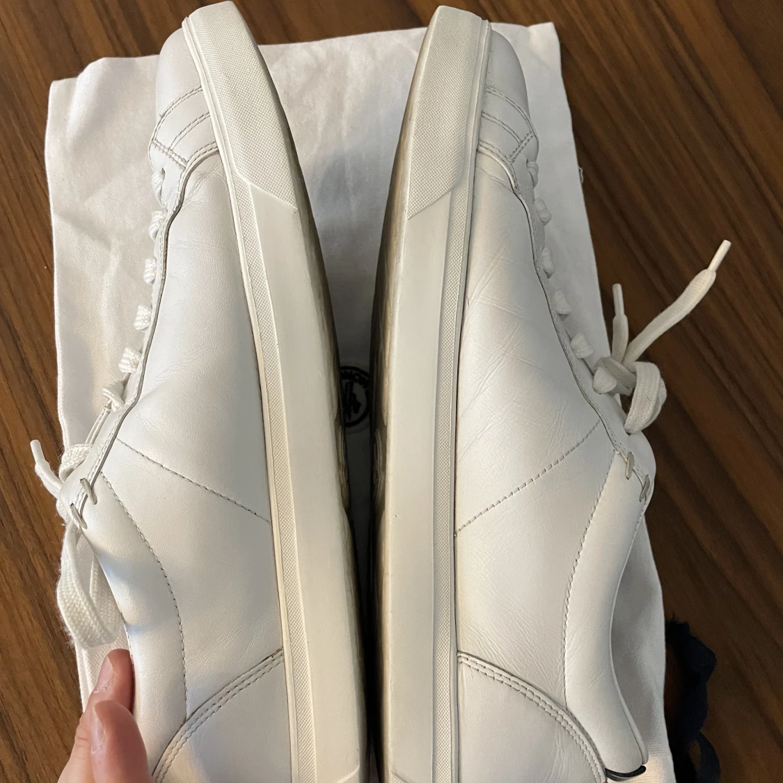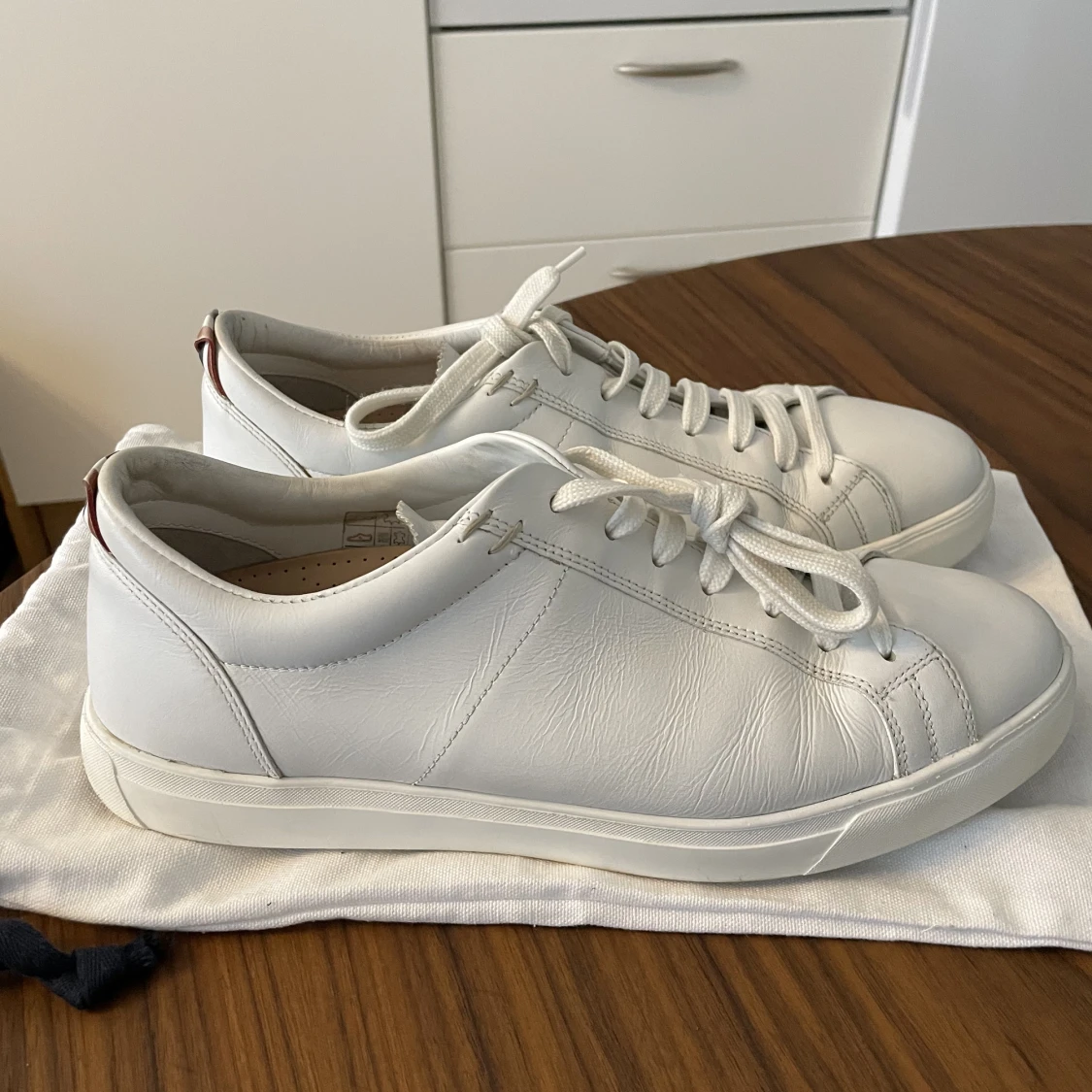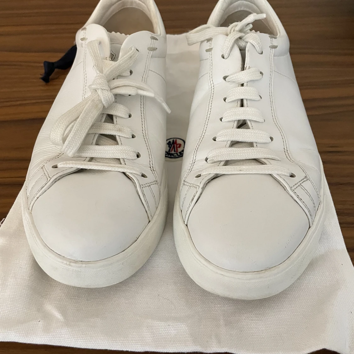 Moncler skor i vitt läder, modell Monaco. Kommer med skopåse samt box. Nyligen inlämnade för rengörning. Har använts med en extra invändig skosula. Nypris 4500kr