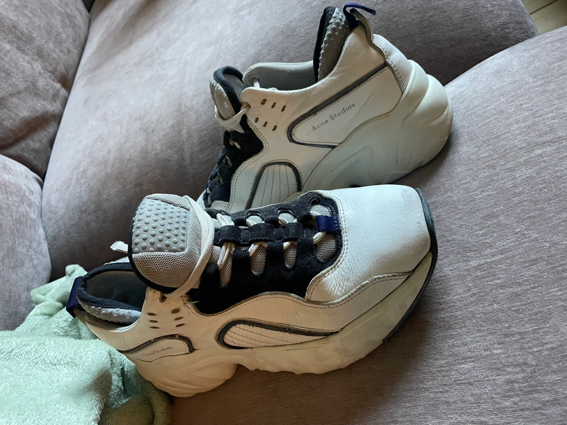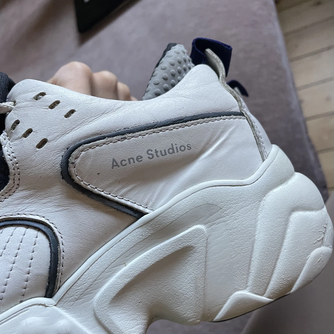 Vita rockaway acne studios sneakers i str 38 (jag skulle säga att dem passar mer en 39a). Väl använda med rispor och stryklor