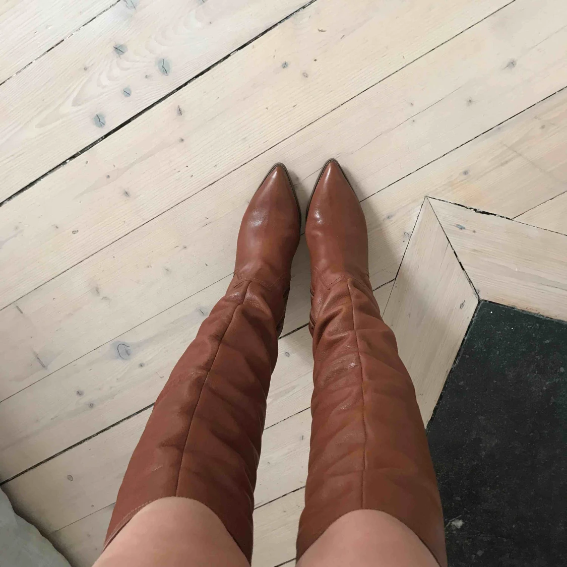 Bruna, knähöga stövlar med klack i äkta skinn. Köpta alldeles nyligen för 2100kr och säljs nu på grund av att min mamma, som köpte dem, har problem med lederna och därför inte kunde ha dem. Använda två gånger. Skickas gärna om frakten betalas!