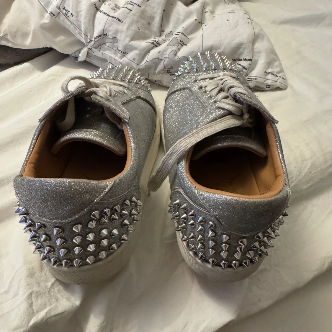 säljer mina loubs jag köpte från plick då de tyvärr inte passade mig. fick tyvärr inte med varken boxen eller äktighetsbevis därför priset❤️❤️ storlek 41. skorna är använda och har en fläck (se sista bilden) men inget som påverkar helhetsintrycket av skorna