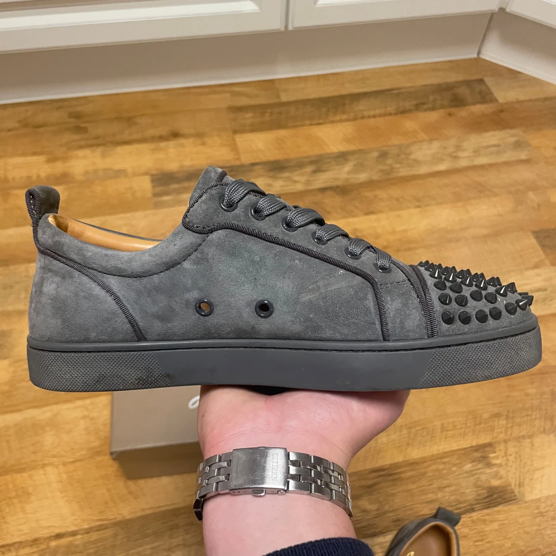 Tja! Säljer nu min riktigt feta Christian Louboutin i färgen grå i storlek 41, dem knappt använda( dem är som nya), skriv vid frågor eller funderingar