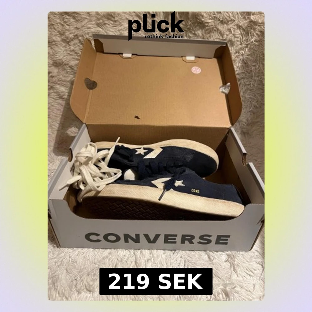 Snygga Converse CONS sneakers i mörkblå mocka med vita detaljer och platt sula. Extra snören medföljer🙏 och skorna är inte använda mkt så mkt gott skick!👍 storlek är 40,5 passar 41