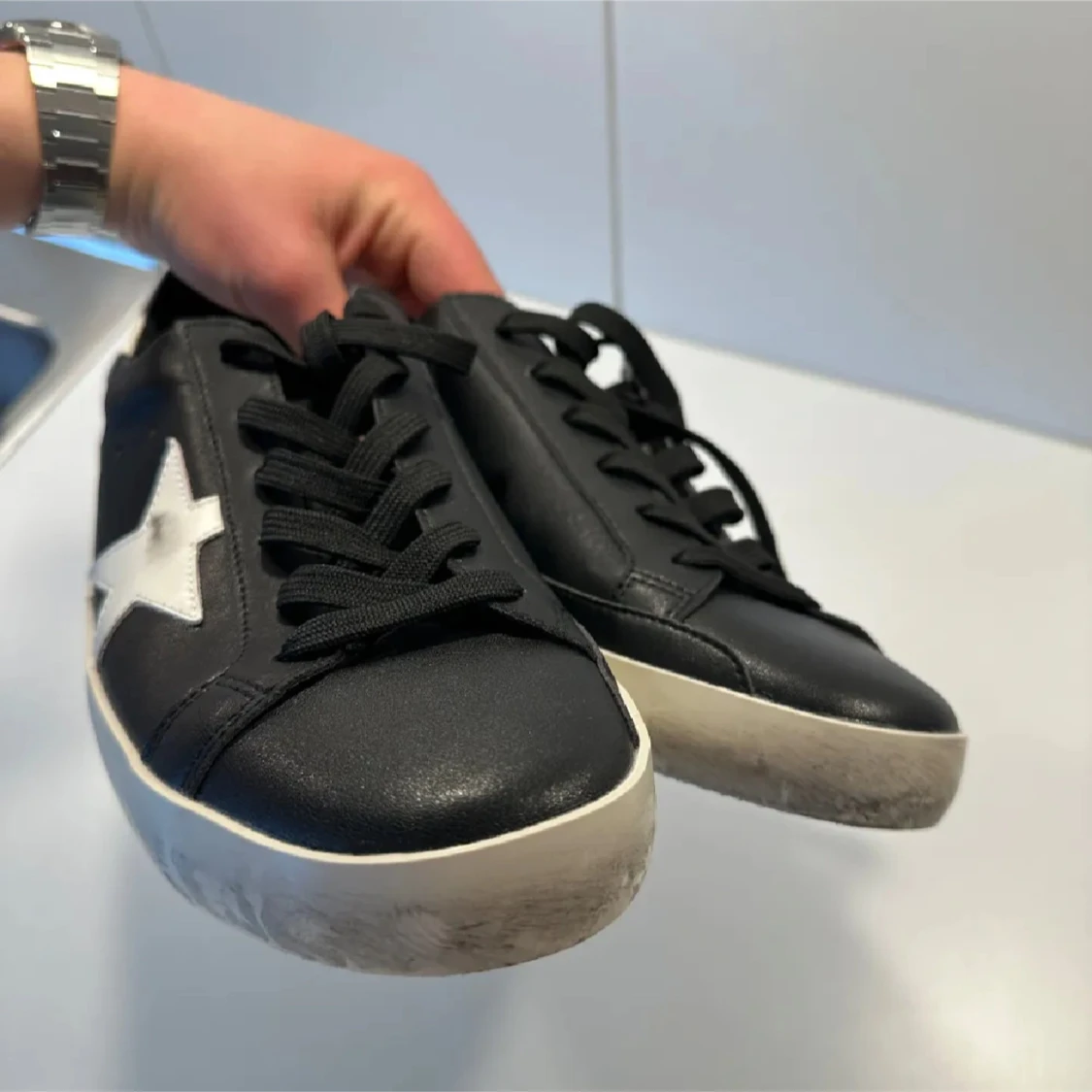 Golden Goose skor i färgen svart med skinn! 10/10 skick inga defekter då de använts med omsorg. Storlek 45 men passar 44 med! Inget og dessvärre. Skriv gärna om du undrar vad som!🤝OBS: inte säker på äktheten på dessa men med högst trolighet äkta!