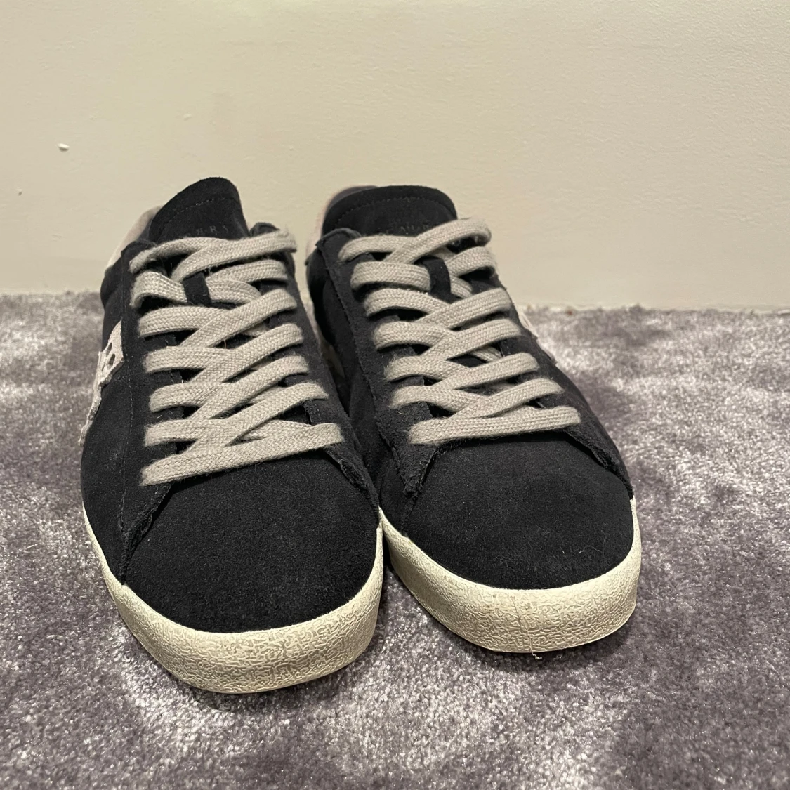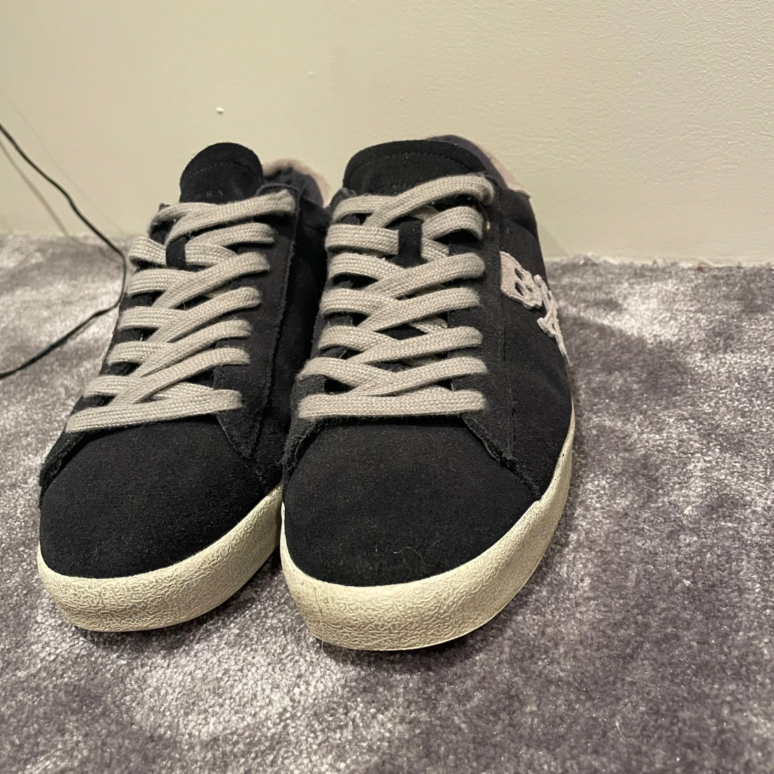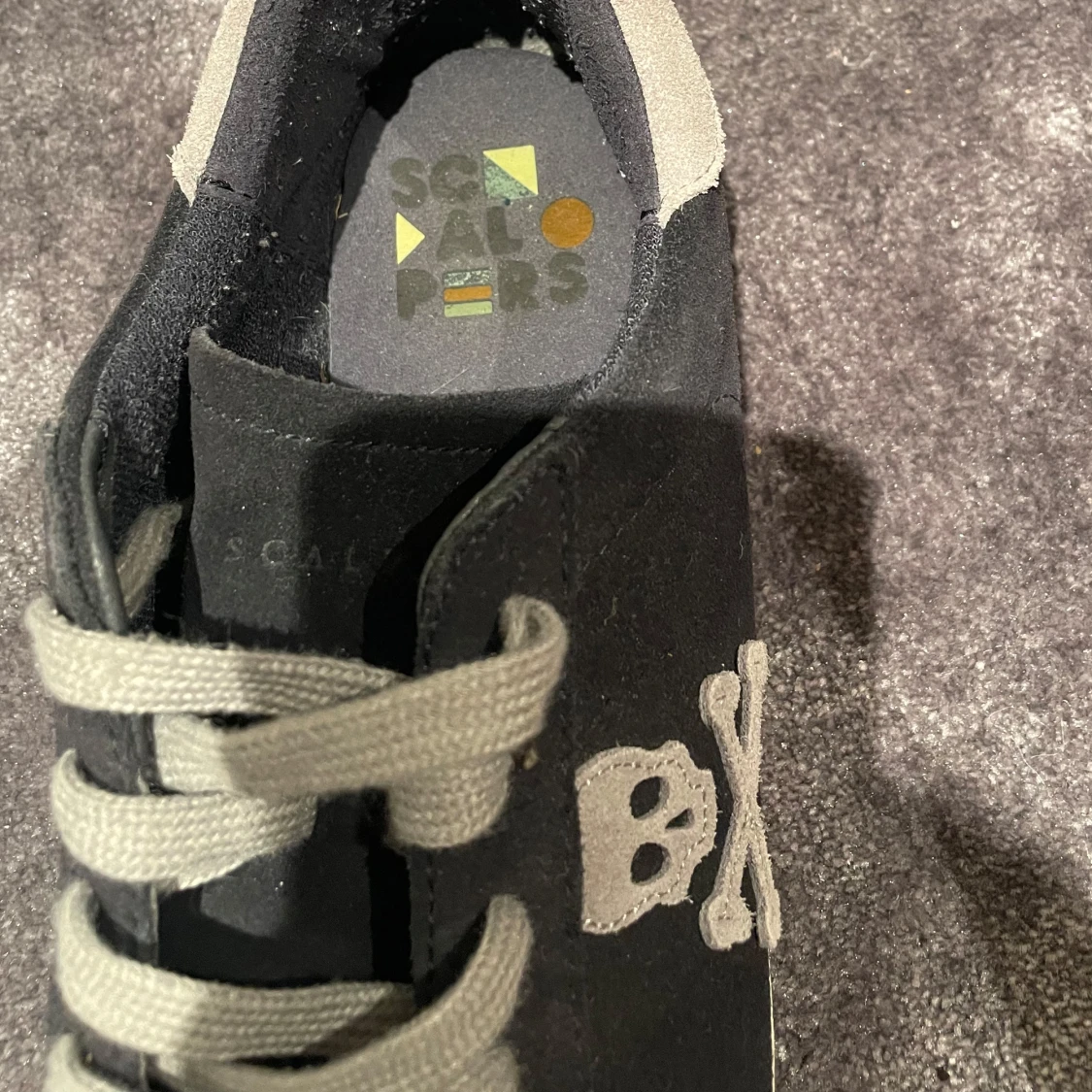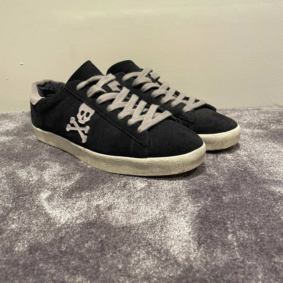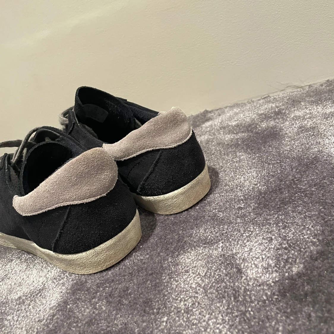 Snygga mörkblå sneakers med grå snörning. Skorna har en vit sula som ger en skarp kontrast till det mörkblå tyget. Perfekta för en avslappnad stil. Storlek är 43. Skicket är nästintill oanvänt, använda ca 3-4 gånger. Skorna är vad jag ser slutsålda överallt. Vid fler frågor eller andra funderingar är det bara att höra av sig!🙌