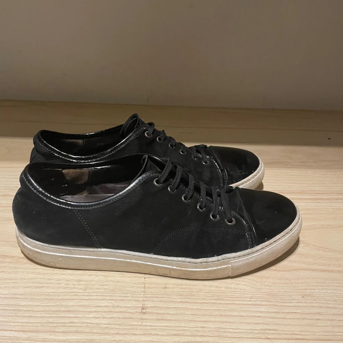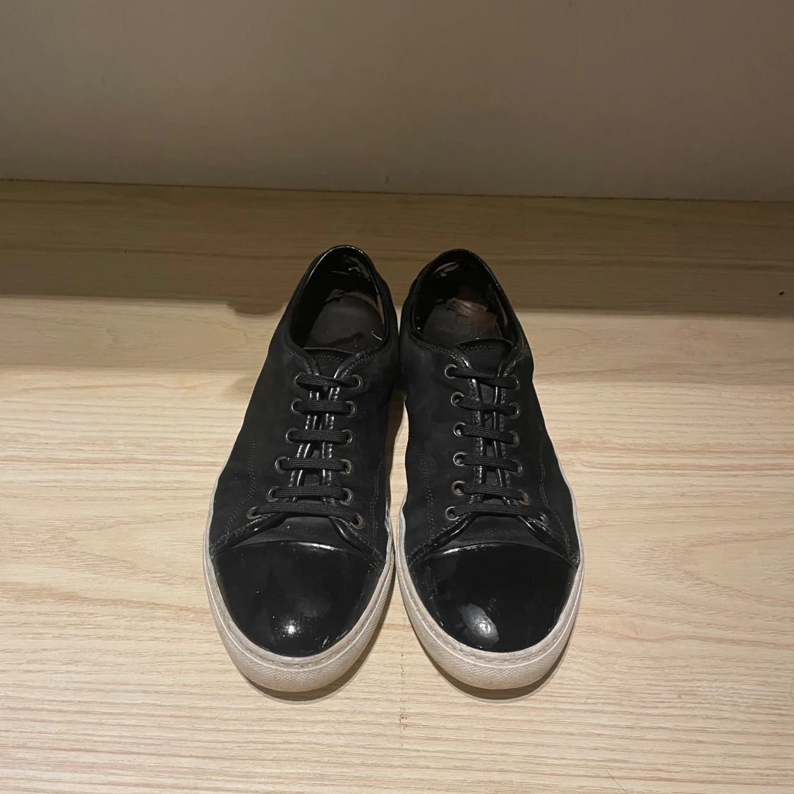 Skorna har blivit målad med nån skofärg på sulorna som håller på att gå bort man kan måla om men sulorna är inte så gula under färgen det är en spricka under sulan som man ser på bilden