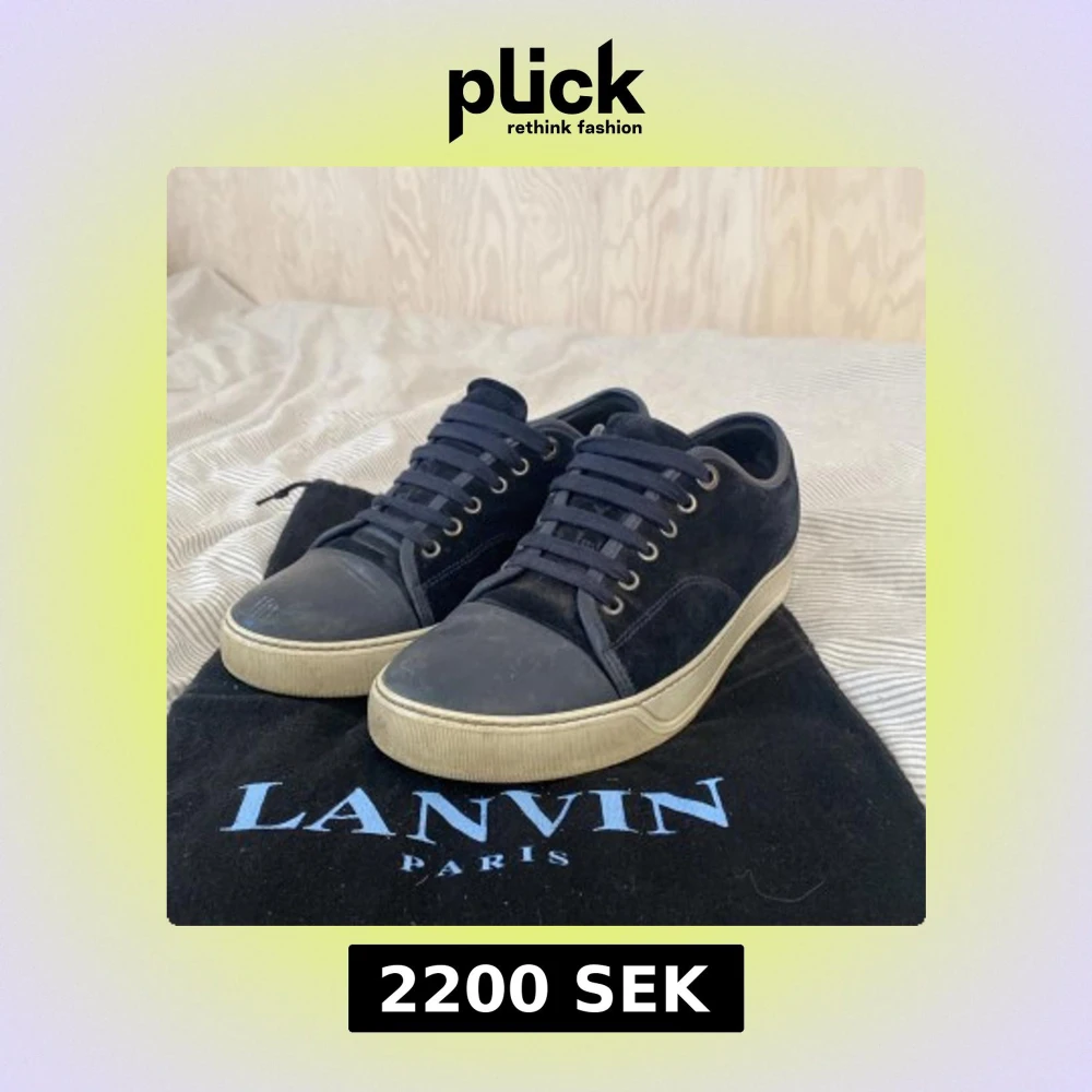 Snygga svarta sneakers från Lanvin i mocka med snörning och en stilren design. Skorna har en gummisula och en tåhätta i svart som ger en cool kontrast. Perfekta för en stilren look.