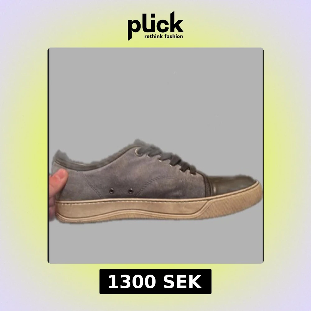 Snygga sneakers från Lanvin i grå mocka med svart snörning och svart lackad tå. Skorna har en vit, robust sula och klassisk låg profil. Perfekt för dig som gillar stilrena och exklusiva detaljer i vardagslooken.