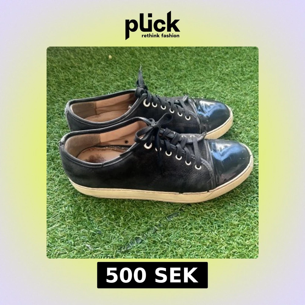 Snygga svarta sneakers från Lanvin med klassisk design, svarta skosnören och vit sula. Ovandelen är i mocka och tån är lackad för en extra touch. Perfekta för dig som gillar stilrena och exklusiva sneakers.