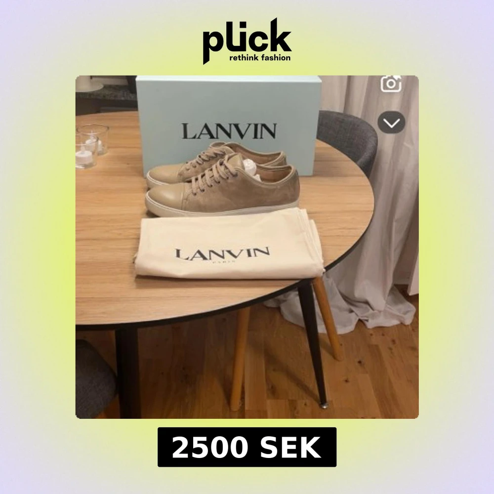 Snygga beige sneakers från Lanvin med ovandel i mocka och detaljer i skinn. Skorna har rund tå, platt vit sula och matchande beige snörning. Perfekta för dig som gillar stilrena och exklusiva sneakers. Kommer med originalkartong och dustbag. Finns några enstaka skavanker som skadan på sidan av skorna men ingen man tänker på. Pris kan diskuteras!