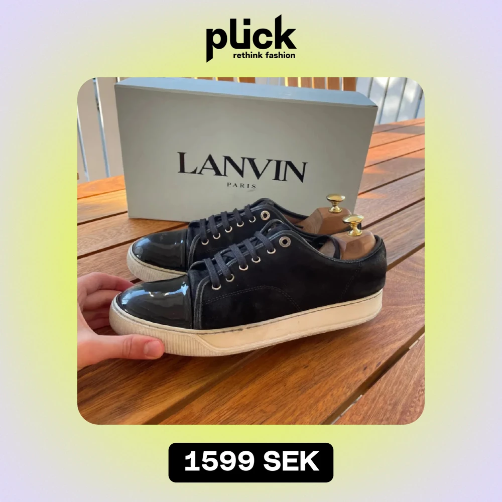 Säljer ett par snygga svarta sneakers från Lanvin. De har en glansig tå och snörning framtill. Skorna är i bra skick med lite slitage på sulorna 6/10. Perfekta för både vardag och fest!