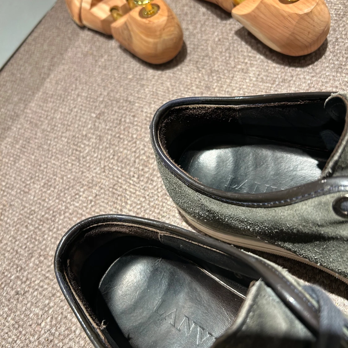 Hej! Säljer nu dessa väldigt populära och eftertraktade lanvin skorna! Storlek UK 9 vilket motsvarar 43/44 EU storlek! Skick 8,5/10! Ny pris= 5000 kr Säljs för= 1699 kr (box ingår såklart + extra skosnören) Tveka inte på att lägga ett prisförslag!