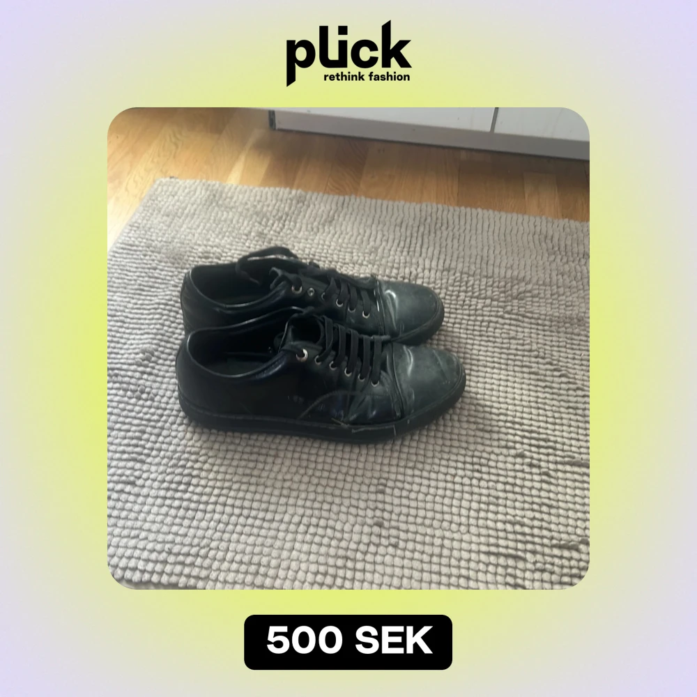 Säljer ett par svarta sneakers i skinn med snörning. De är ganska slitna därför tar jag inte så mycket för dem storlek 43-44. Är villig att gå ned i pris vid snabb affär.