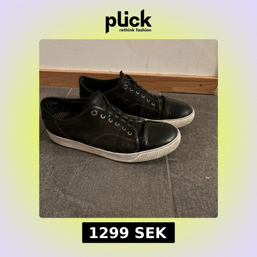 Svarta sneakers från Lanvin med vit sula och rund tå. Skorna har ovandel i skinn och detaljer i mocka, samt svarta skosnören och metallfärgade öljetter. Klassisk och stilren design med kontrasterande vit yttersula. IGEN BOX KOMMER MED✅