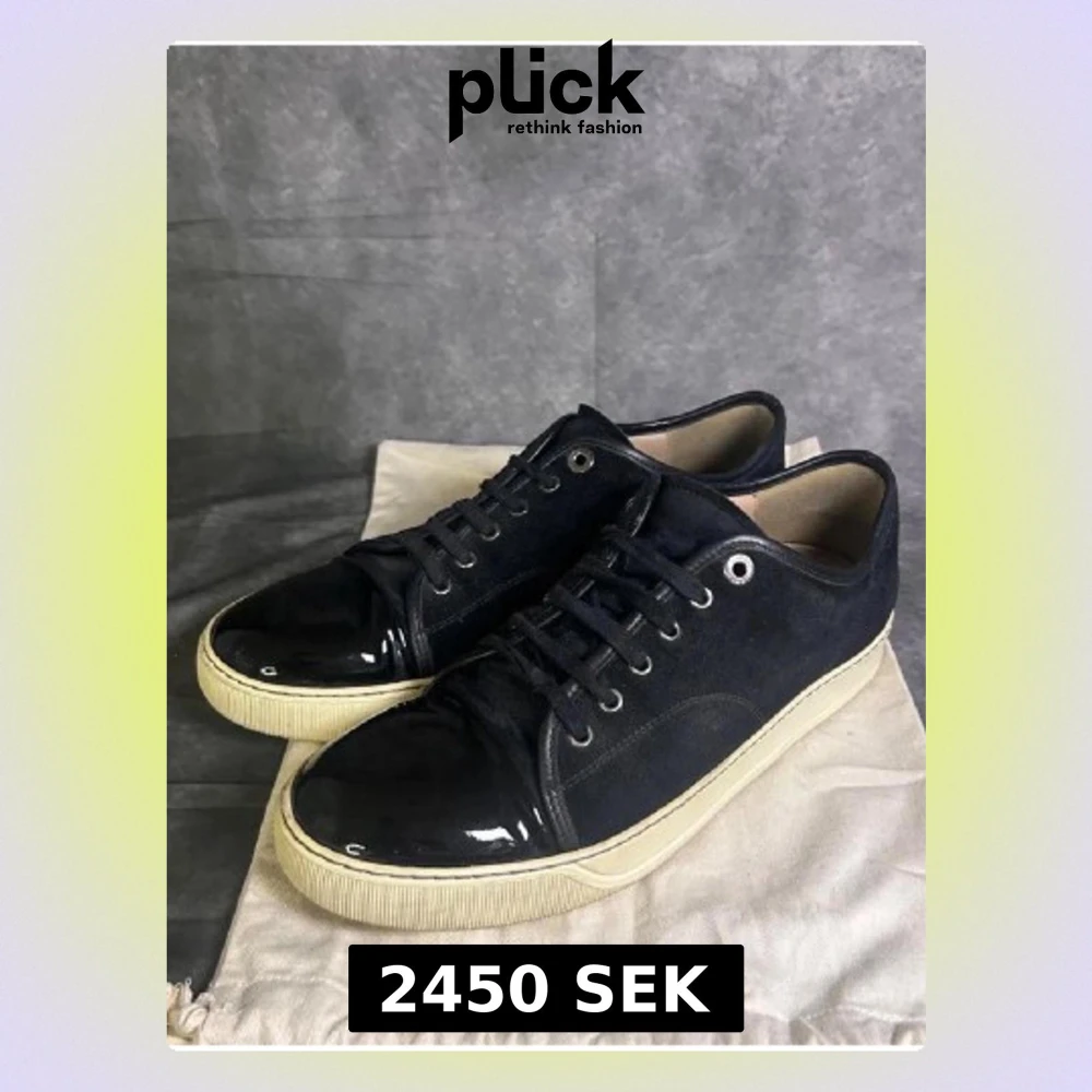 Snygga svarta sneakers med en blank, lackad tå och vit sula. Skorna har snörning och är tillverkade i mocka och lackat skinn, vilket ger en cool kontrast mellan material och finish. Perfekta för dig som gillar stilrena och moderna detaljer. Passar som 43/44