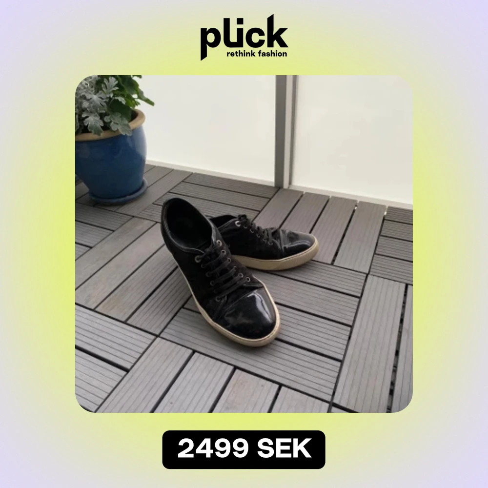 Lanvins svarta med glans. Köpta för 5400kr. skick 8,5/10 Storlek 43-44. Kom görna med bud. Dem ser värre ut på bild än i verkligheten kan skicka fler bilder.