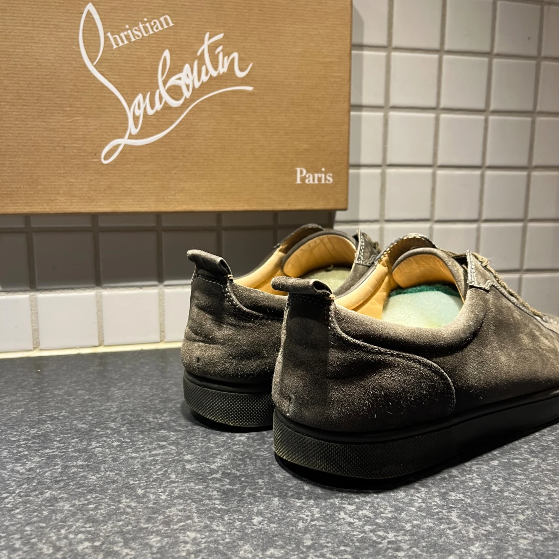 Tja säljer nu mina Snygga sneakers från Christian Louboutin i mjuk mocka med klassisk snörning och rund tå utan nita. skicket får ni avgöra själv utifrån bilderna men skulle personligen säga att det är bra med några små skavanker men som man inte tänker på när man använder det. Skorna är självklart äkta och jag tar gärna emot byten om du bor i Stockholm. Storleken är 41 men kan passa upp till 42 med en tunnare sula. Har du fler frågor är det bara att höra av dig. Mvh Oscar