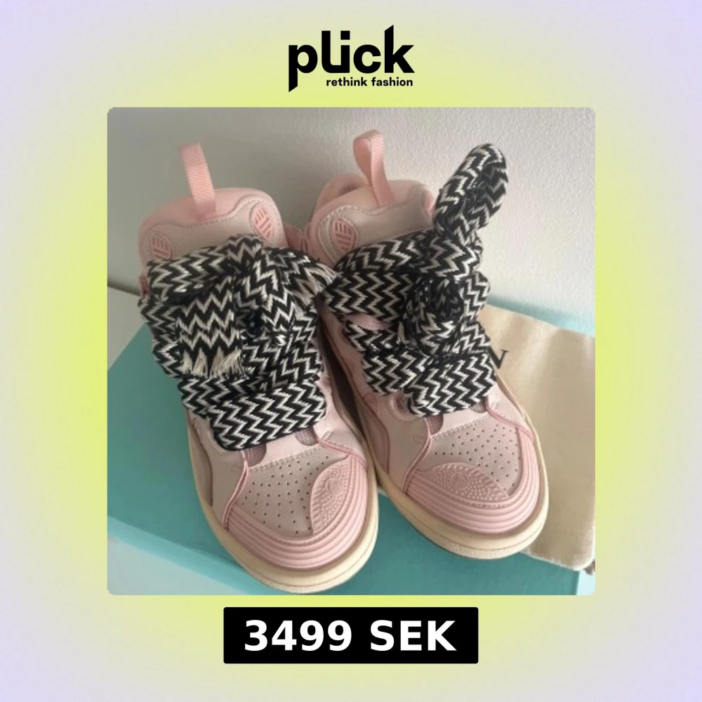 Säljer nu ett par riktigt trendiga lanvin curb skor, passar till allt och är ritkigt populära och sällsynta☀️. Dem här är i färgen rosa vilket är väldigt snygga och stor efterfrågan på dem. Skorna är helt nya kanske använda 3-4 gånger inomhus👌🏼. Dustbag och kartong ingår . Priset är inte hugget i sten så skriv vid funderingar🪨. Skick:9/10✅ Nypris: 8600kr🙈 Mitt pris: 3499kr👍🏻 💎
