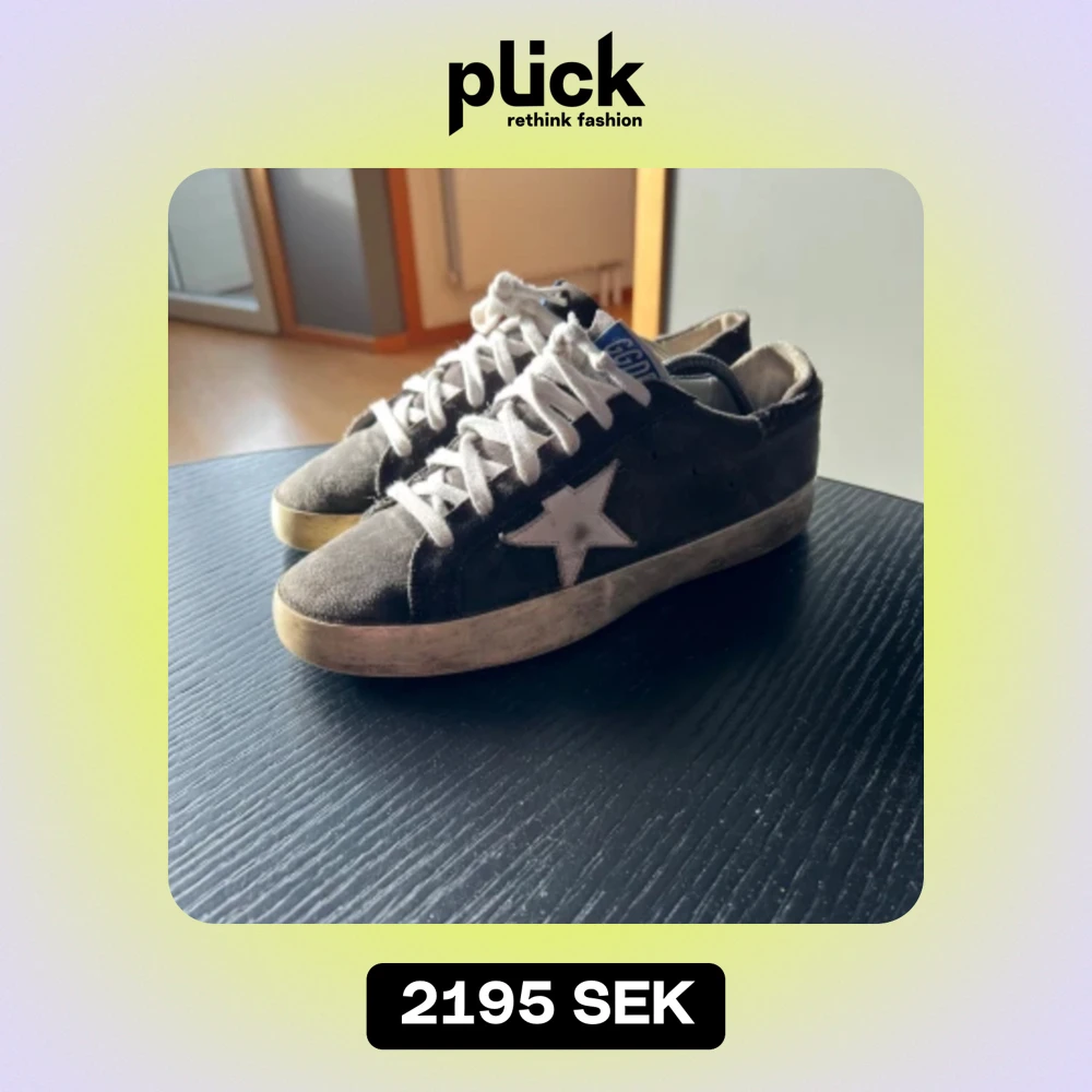 Grymt läge, bra pris! Säljer nu mina riktigt feta Golden Goose sneakers. Storleken är 40,5 men passar dig som har ca 41-41,5. Nypris på dessa är ca 6000kr, skick 6,5/10. Det slitna på skorna ingår i designen. Hör av dig om du har frågor.