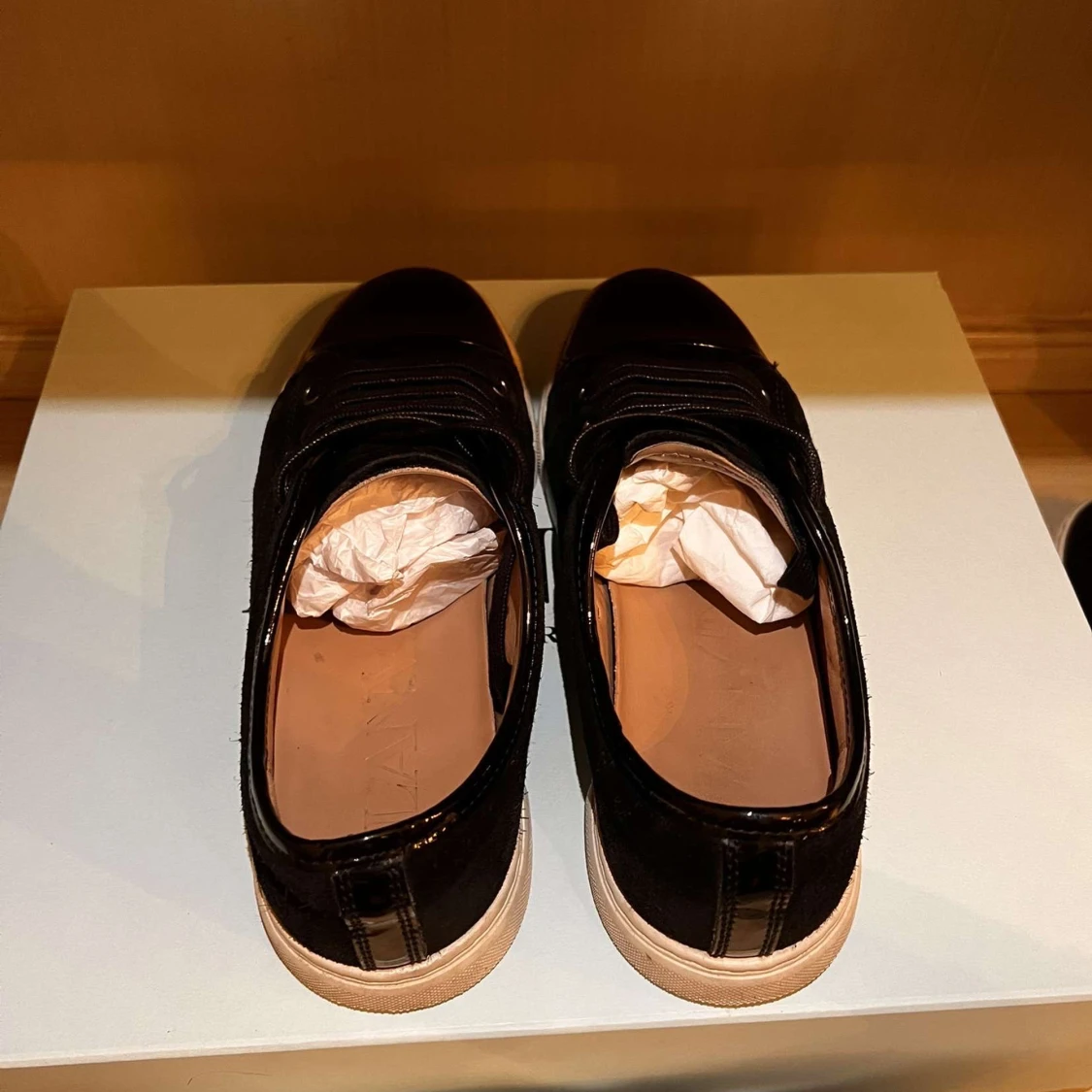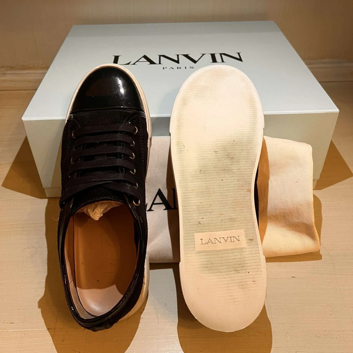 Tjena nu säljer jag mina Lanvin skor. Jag säljer dessa skor för att dom har blivit försmå. Vid fler frågor kontakta mig mvh CH