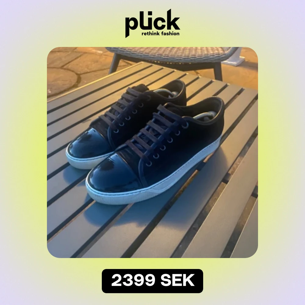 lanvins i den eftertraktade färgen navy blå i storlek uk 6, de är stora i storleken och sitter som 42. Skick 8,5/10 då de har lite defekter dels lacken i form av små creasningar och liten repa som syns på bilden. Annars toppskick. Fråga vid fundering