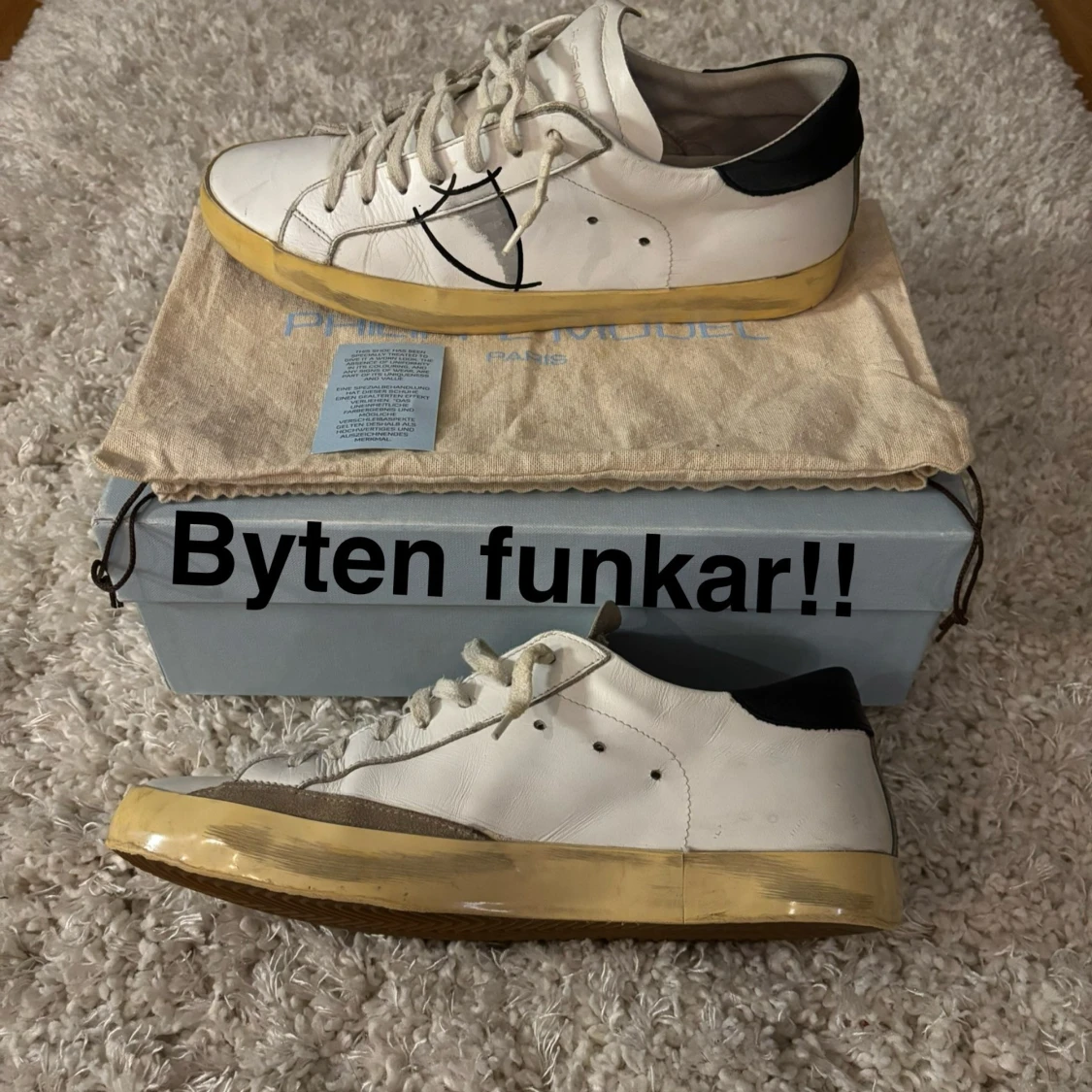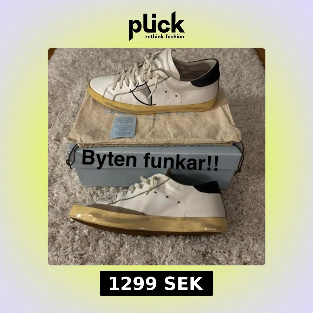 Tja säljer nu ett par Philippe model skor, Som är advända få antal gånger. Med ett skick på 10/10!Allt OG följer med som syns på bilderna. Kontakta gärna om du har några några frågor och vid snabb affär kan pris diskuteras!! Skönast på ghäda!!!!!😈😈