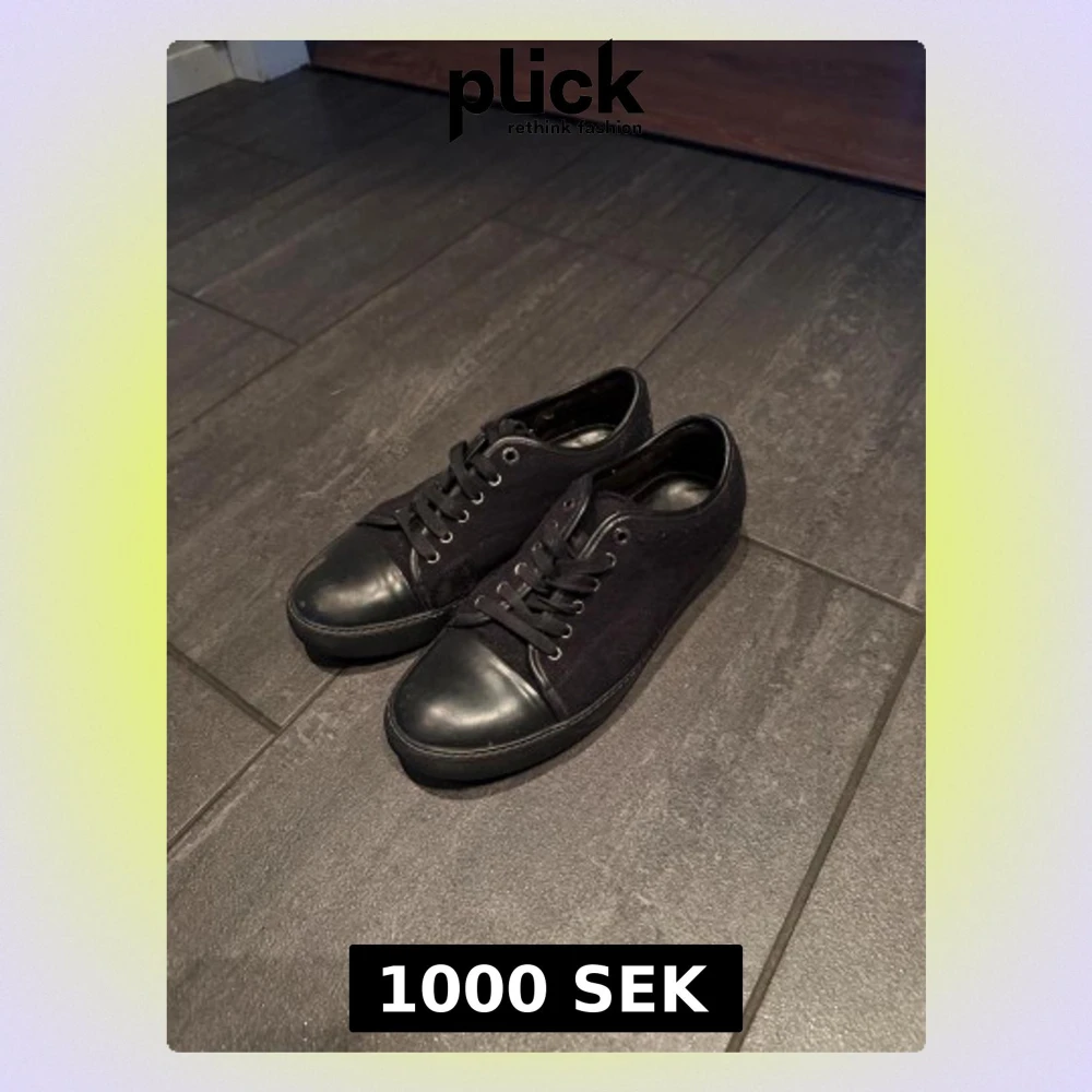 Svarta sneakers från Lanvin. Storlek 43 bra skick förutom att de har skrapats bort på inne sidan av skon, syns om man kollar noga på skon.