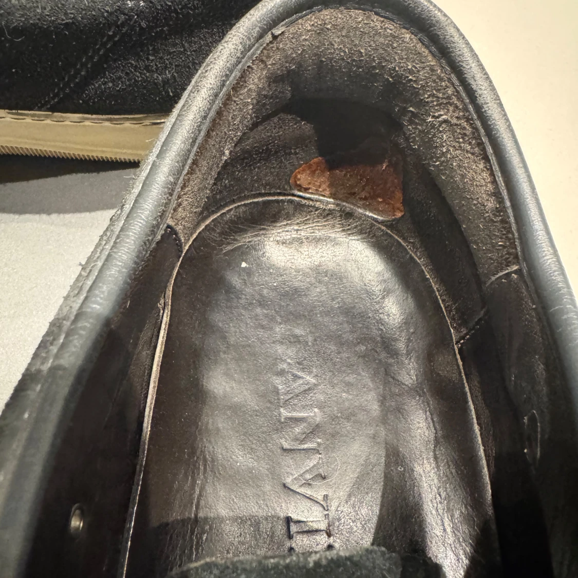 Väl använda lanvin skor. Storlek uk9 ish 43/44. Har mycket kvar o ge. Hälen är sliten på både skorna, men det känner man absolut inte när man har på sig de.
