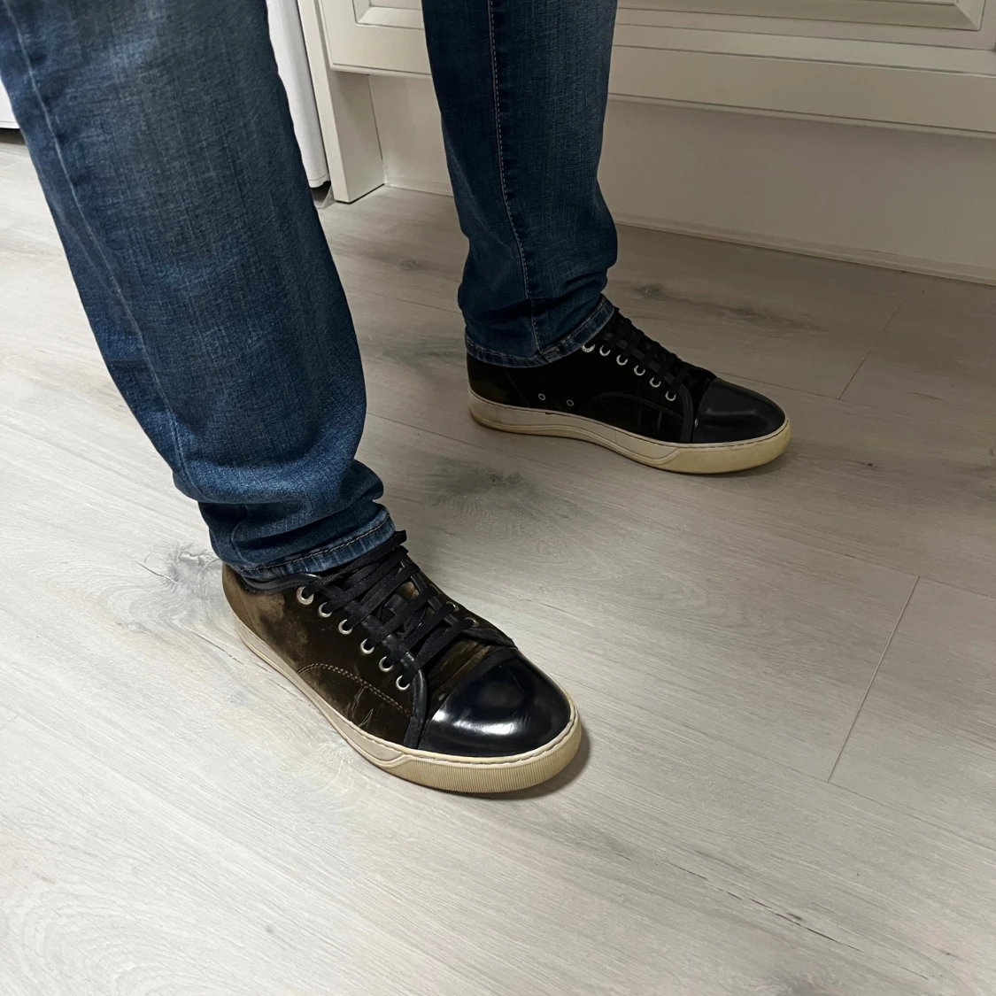 Tja! Säljer ett par riktigt feta Lanvin skor i färgen olivgrön i uk5 som motsvarar 40-41 i skostorlek, dem är i fint skick de ända är dem där lilla slitningarna på mockan som man ser på bilderna annars en riktigt fin sko, skriv om ni har några frågor eller funderingar🙌🙌