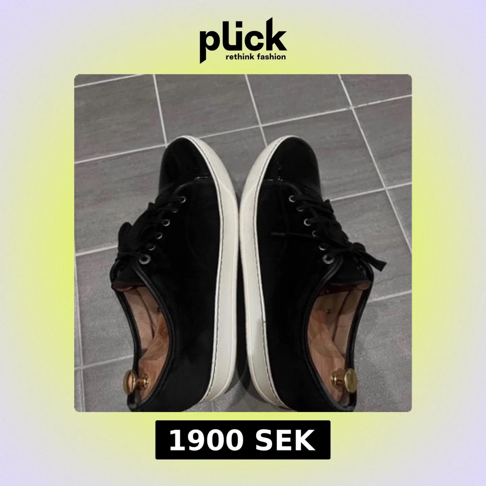 Snygga svarta sneakers från Lanvin med en glansig finish och vita sulor. Skorna har snörning och en rund tå, vilket ger en klassisk look. Perfekta för en stilren vardagsstil., storlek 42