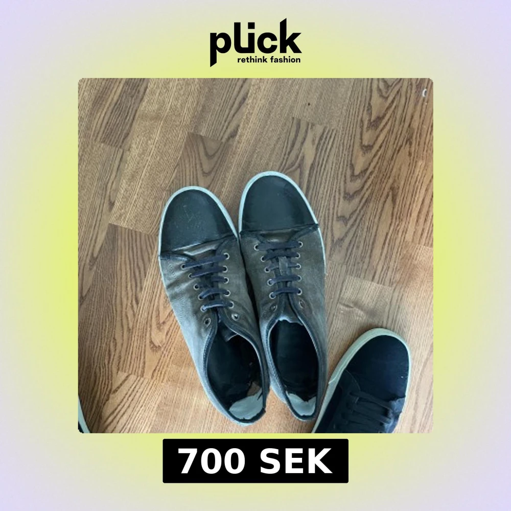 Snygga sneakers från Lanvin med ovandel i olivgrön mocka och svart skinn på tån. Skorna har svarta snören, vit sula och klassisk rund tå. Perfekta för dig som gillar stilrena och exklusiva sneakers med en unik touch. De e limmade som man ser på sista bilden men funkar skit bra och har aldrig haft nå problem med de. De e storlek 9 de har ingen box