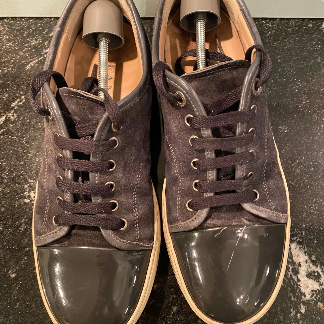 Hej, säljer nu dessa lanvin cap toe sneakers i mörkgrå. De är i använt skick med tecken på användning. De är i storlek uk 6 men passar ca 41-42. Box medföljer! Skriv vid frågor eller funderingar.