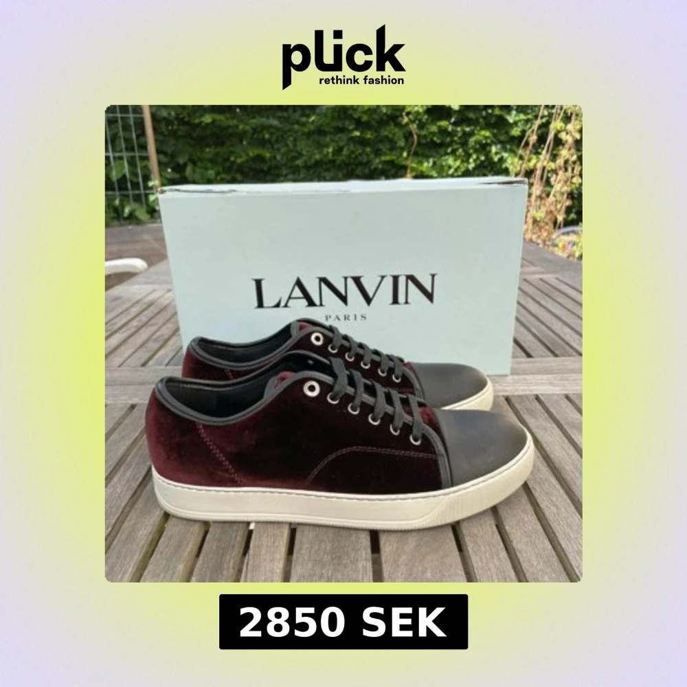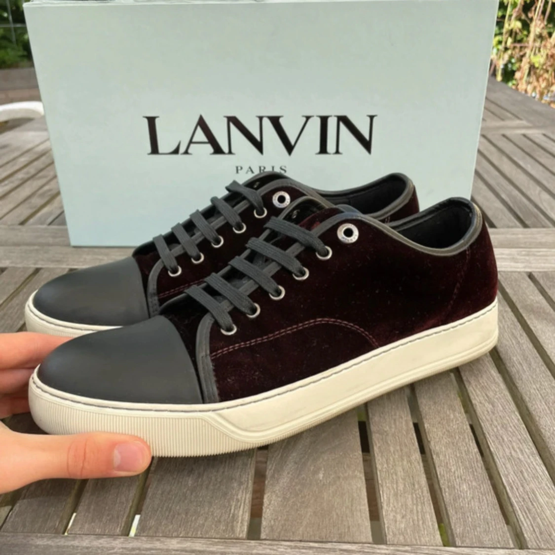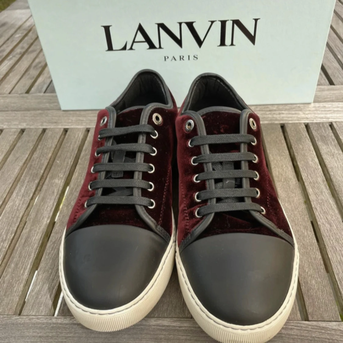 Snygga sneakers från Lanvin i vinröd sammet med svarta detaljer. Väldigt unika och otroligt skick, samt dustbag och box.