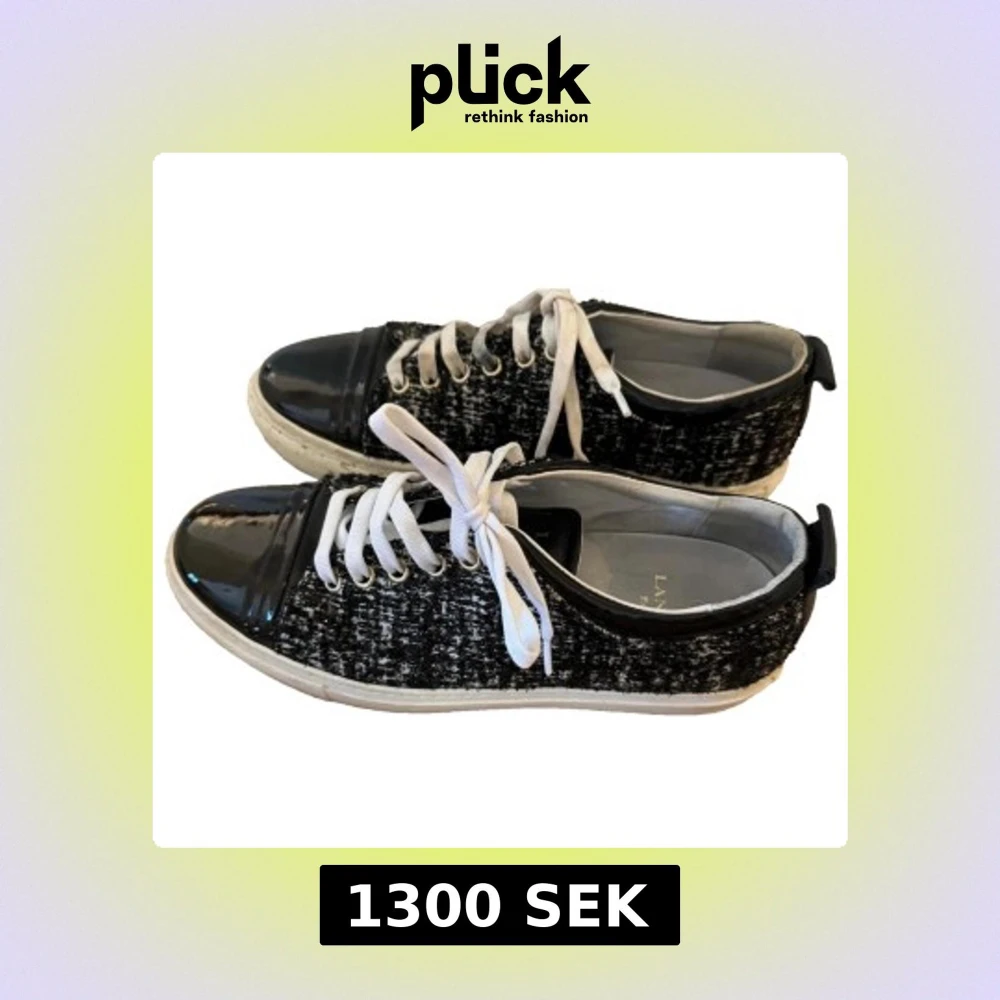 !! Intressekoll !! Snygga sneakers från Lanvin i svart och vit med snörning. Jättefint skick på själva skon men sliten sula! Köpte second hand för 1800 men fick ej med låda då tyvärr. Strl 37 men passar mig som bär 37,5