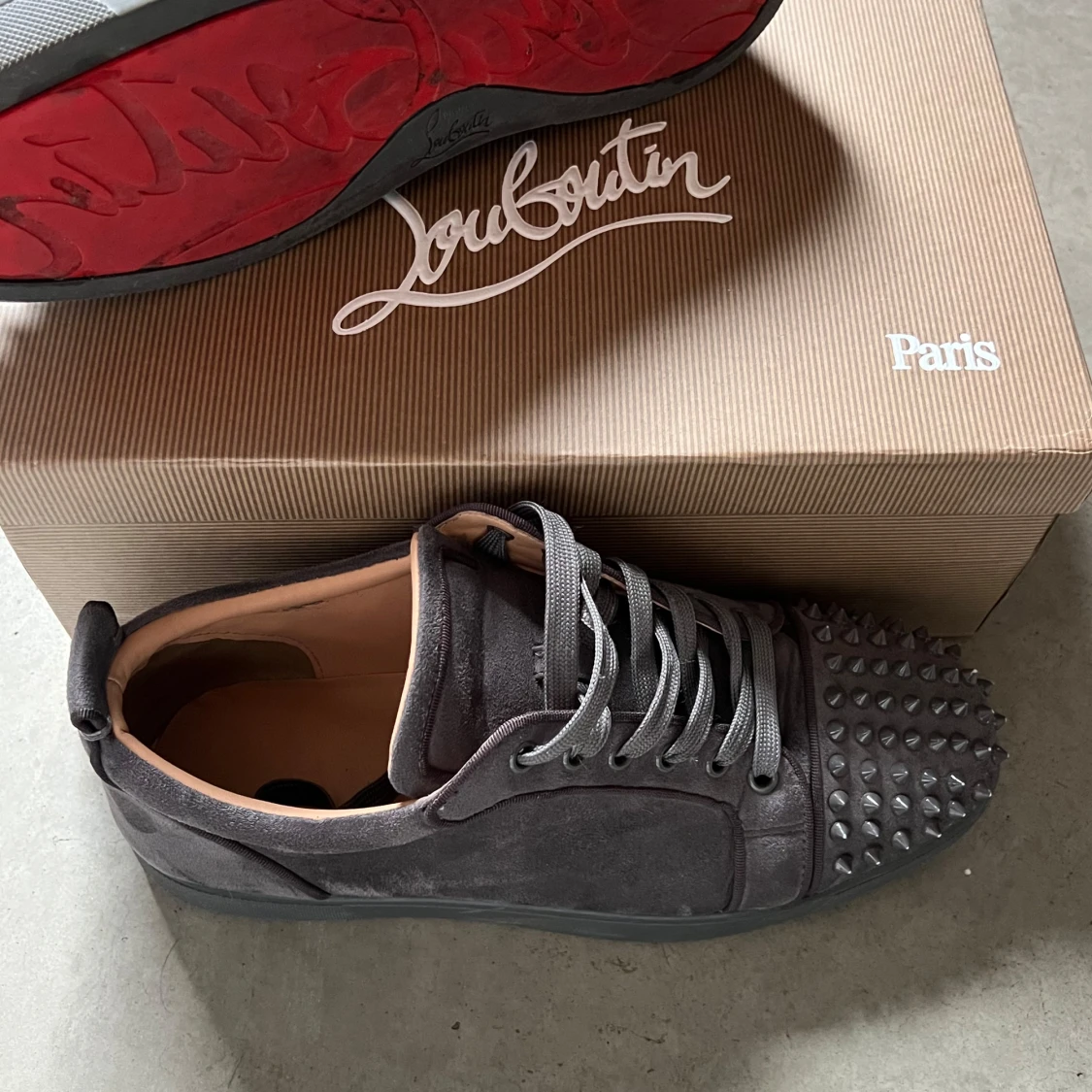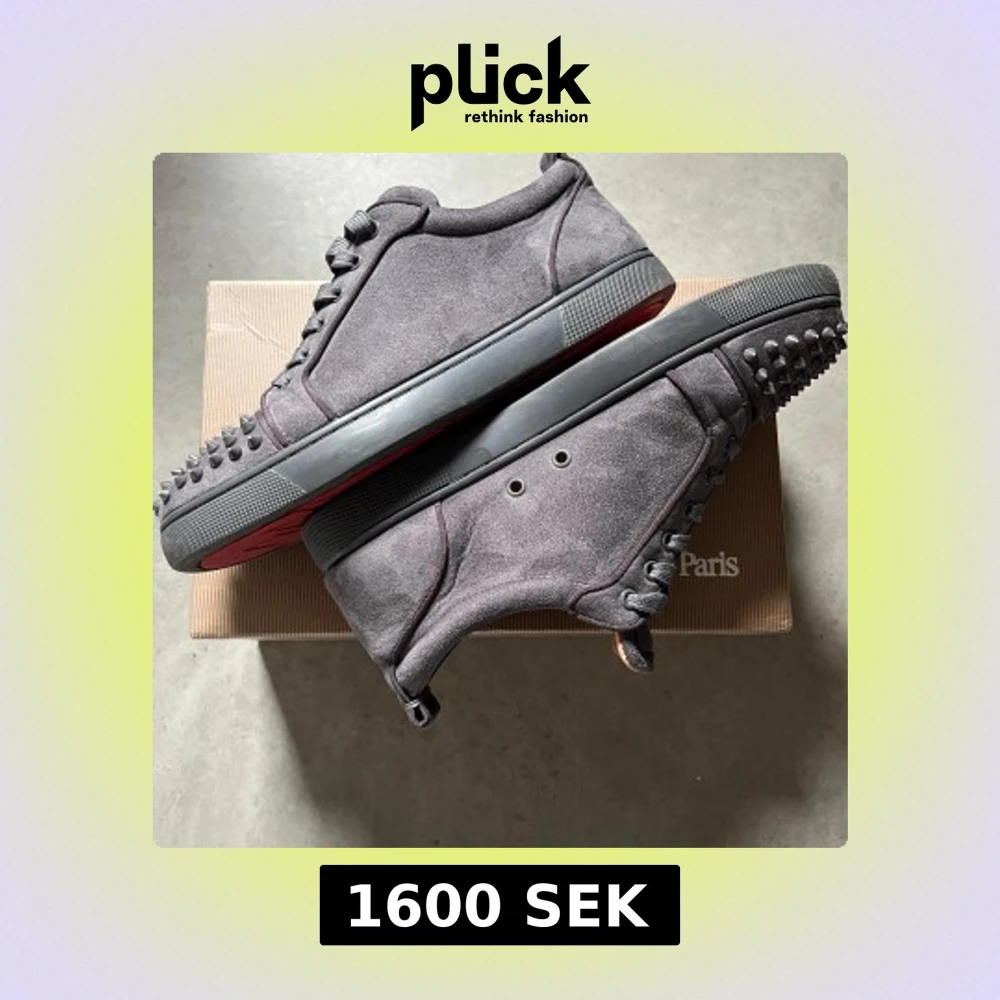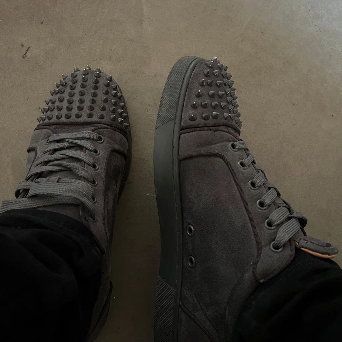Säljer nu mina grå Loubs med nitar🩸Skorna är i bra skick. Det som finns är slitningarna på nitarna vilket syns på bilderna men är ingenting man tänker på. Sulan är jättefräsch både den på insidan och utsidan. Hör av er vid fler frågor✅ Byten är intressant!