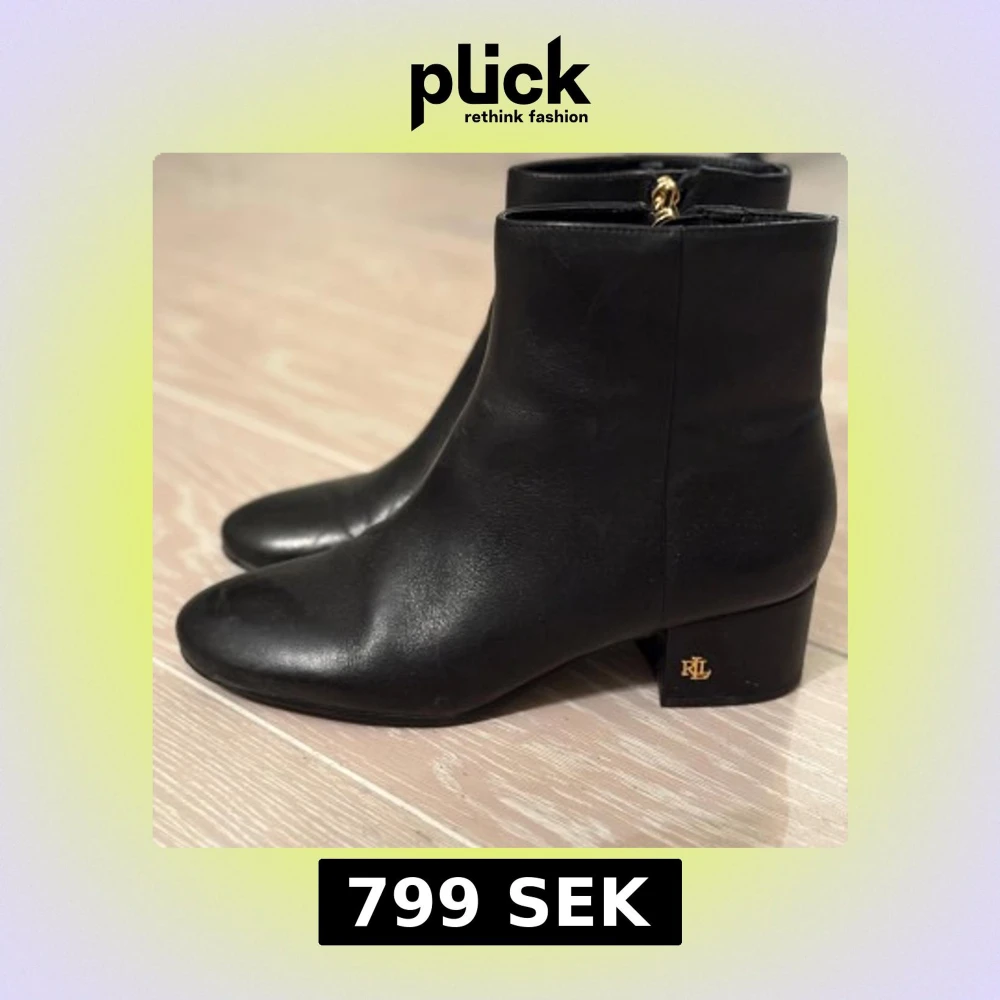 Snygga svarta boots i skinn från Lauren Ralph Lauren med dragkedja och låg klack. Perfekta för en stilren look med en diskret logga på hälen. Passar till många olika outfits och tillfällen.