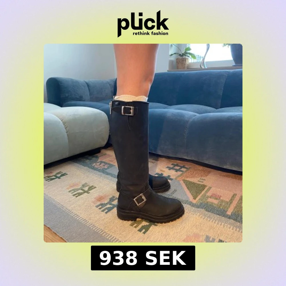 Säljer ett par svarta höga boots med rejäl sula med paladium spännen. Stövlarna är i läder och har rund tå samt dragkedja på baksidan. Perfekta för dig som vill ha en edgy, stilren look till höst och vinter. Knappt använda.