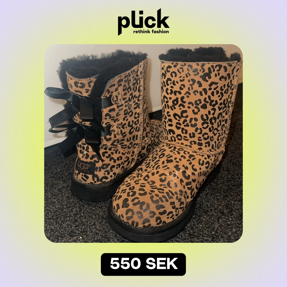 Säljer mina söta leopard uggs med rosetter baktill. Använda men inga defekter med undantaget på en liten ”repa” (se sista bilden), går dock säkert o fixa. Står storlek 35 men passar mig som har 37-38. Frakt tillkommer. Hör gärna av dig vid fler frågor eller bilder.