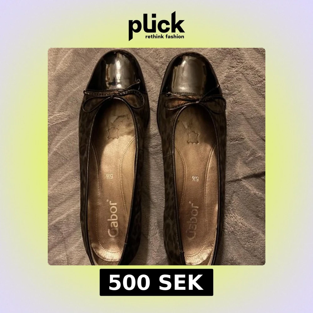 Snygga ballerinaskor från Gabor med leopardmönster i mörkbruna och svarta toner. Skorna har rund tå med lackad svart topp och en söt rosett framtill. Platt sula och insida i skinn för extra komfort. Perfekta för dig som gillar djurmönster och stilrena detaljer. Mycket god skick nästan som nya original pris 1400kr mitt pris 500kr