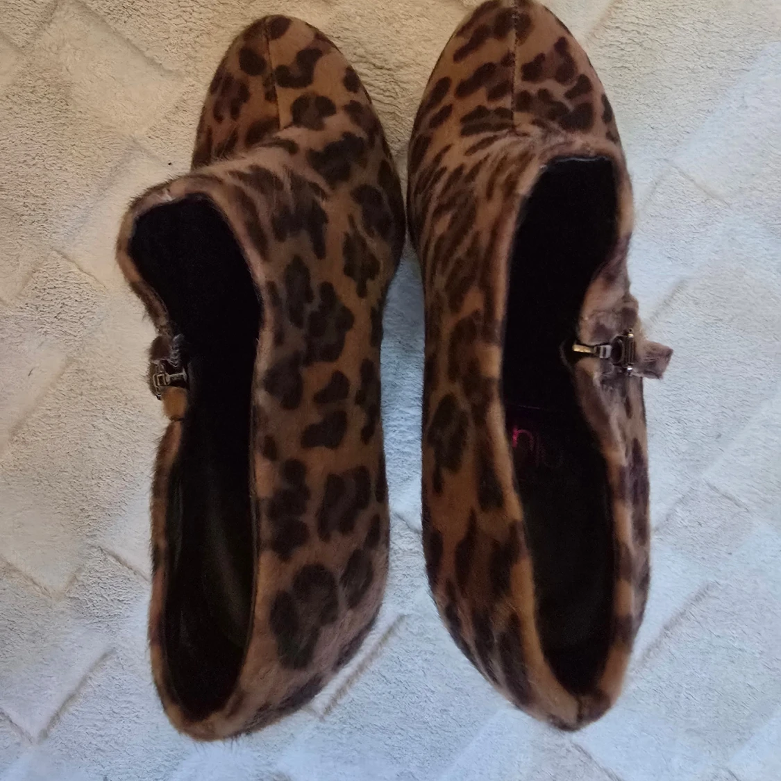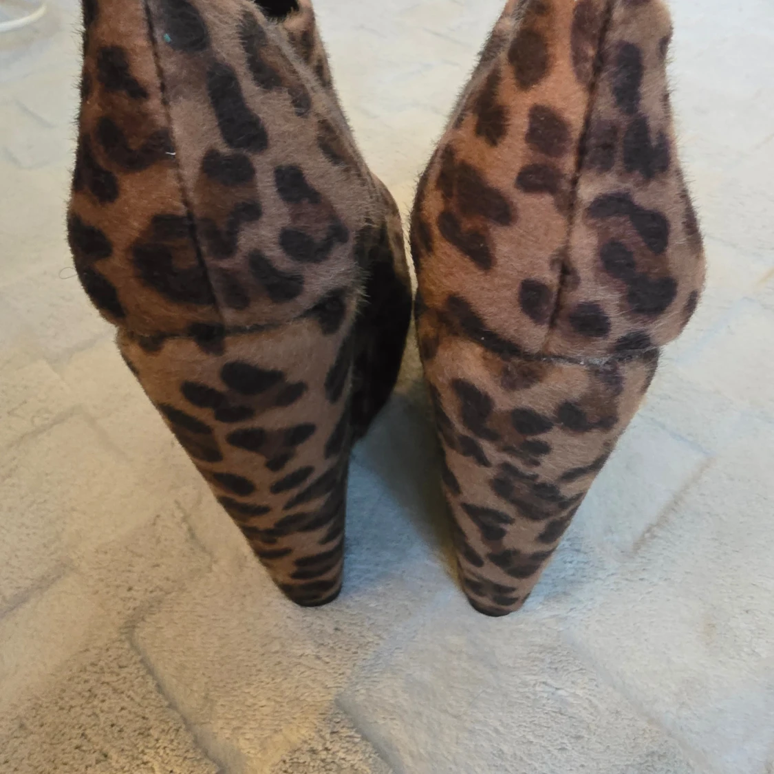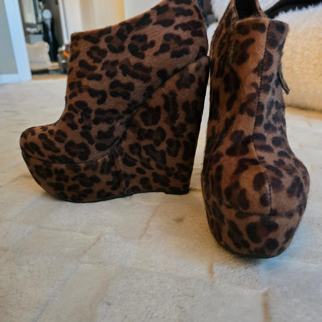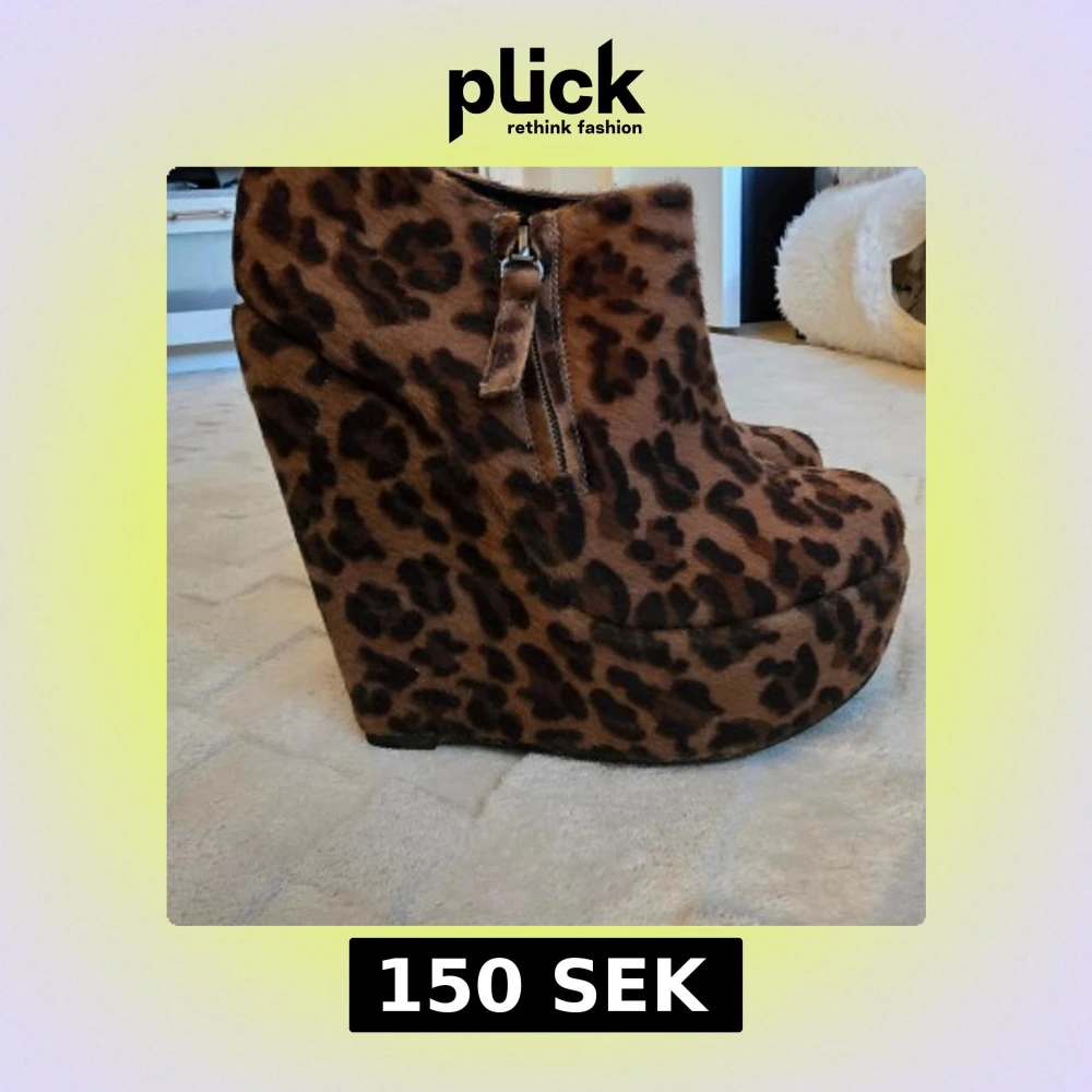 Säljer ett par snygga kilklackar med leopardmönster och dragkedja på sidan. Skorna har hög platå och är täckta i ett mjukt syntetmaterial. Perfekta för dig som vill sticka ut med ett djurmönster och få extra höjd.