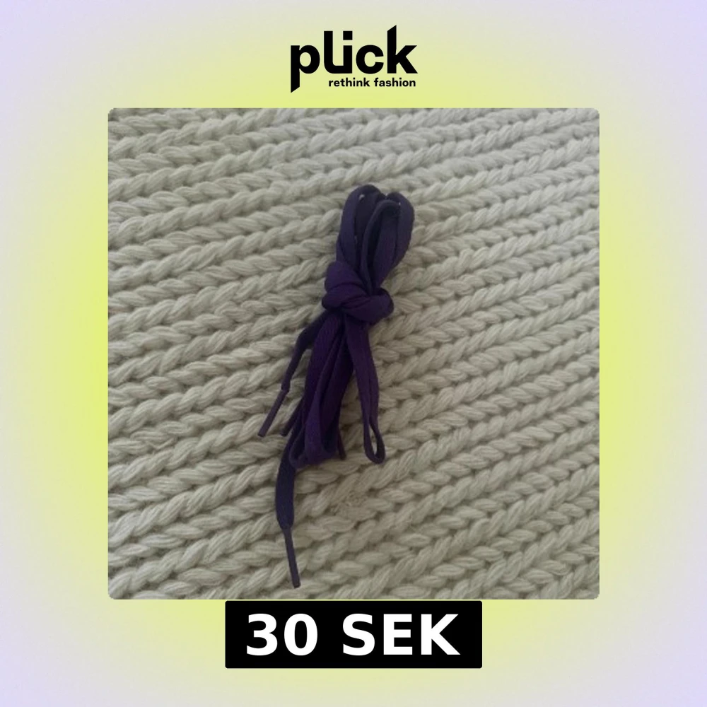 Säljer ett par lila skosnören i textil, perfekta för att ge dina sneakers eller kängor en personlig touch. De är platta och har klassiska plasttips i ändarna. Passar till de flesta skotyper och är enkla att trä i.