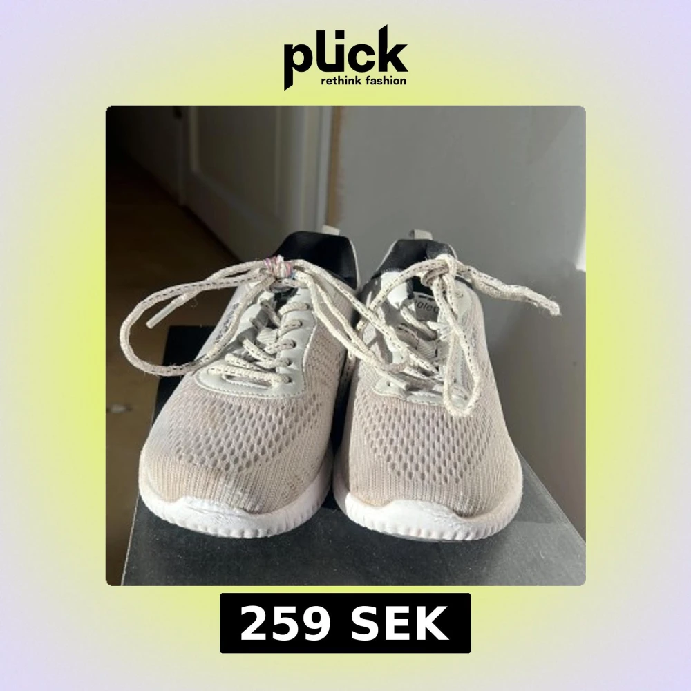 Säljer ett par ljus gråa idrottsskor. De har blivit använda ett tag men är i bra skick. Storlek 37 fast ganska små för att vara storlek 37. Det ena skosnöret är lite sönder med de går att bytas ut.