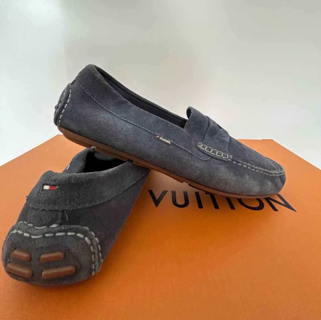 Säljer ett par stilrena mörkgrå loafers i mocka från Tommy Hilfiger. En tidlös accessoar för den modemedvetna. Perfekta både för en dressad och avslappnad look. Priset är inte hugget i sten så skicka prisförslag✅ Skriv vid frågor eller funderingar i DM🍾