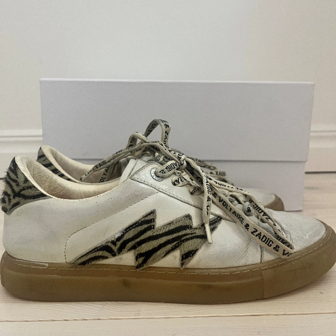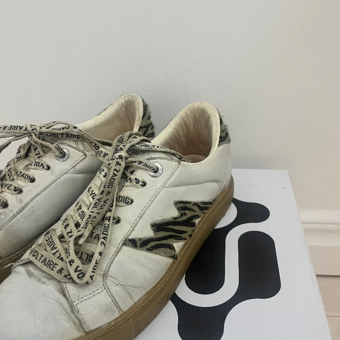 Super snygga vita sneakers från Zadig&Voltaire med zebra detaljer💓💓bara att höra av er vid frågor!!