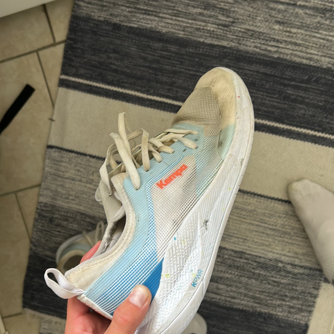 Säljer flera par handbollsskor som funkar till flera sporter från Kempa och Adidas (Puma nt till salu) . Skorna har snygg sportig design med mesh och syntetmaterial, snörning och platt sula. Färgerna är vitt, blått, ljusblått och inslag av limegrönt. Perfekta för dig som vill ha grymt grepp och stil på planen. Riktigt bra grepp och kvalitet på alla. Skriv prisförslag på skorna