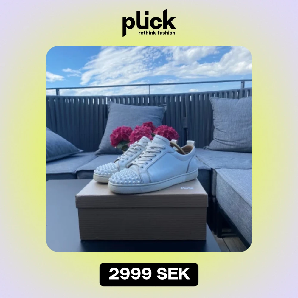 Säljer nu dessa feta loubsen i färgen vit😀 Använda en del men fortfarande mycket kvar att ge, box och skopåsar ingår. Storlek 41 men sitter större. Blev ett hål i sulan för ett tag sedan men det är lagat hos skomakare. Självklart äkta😀