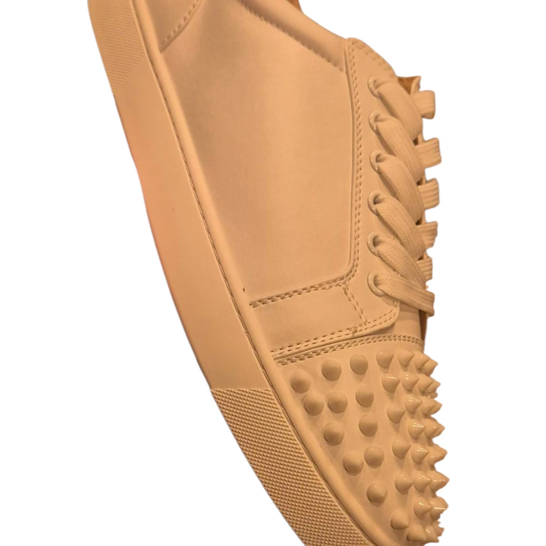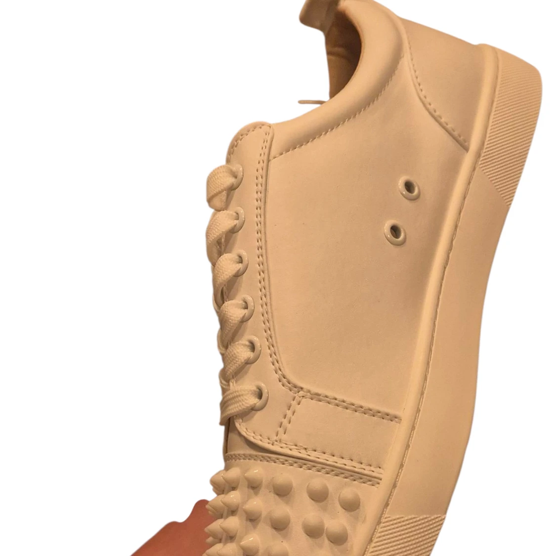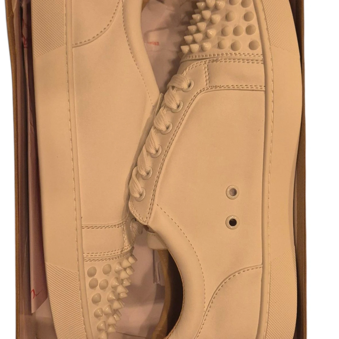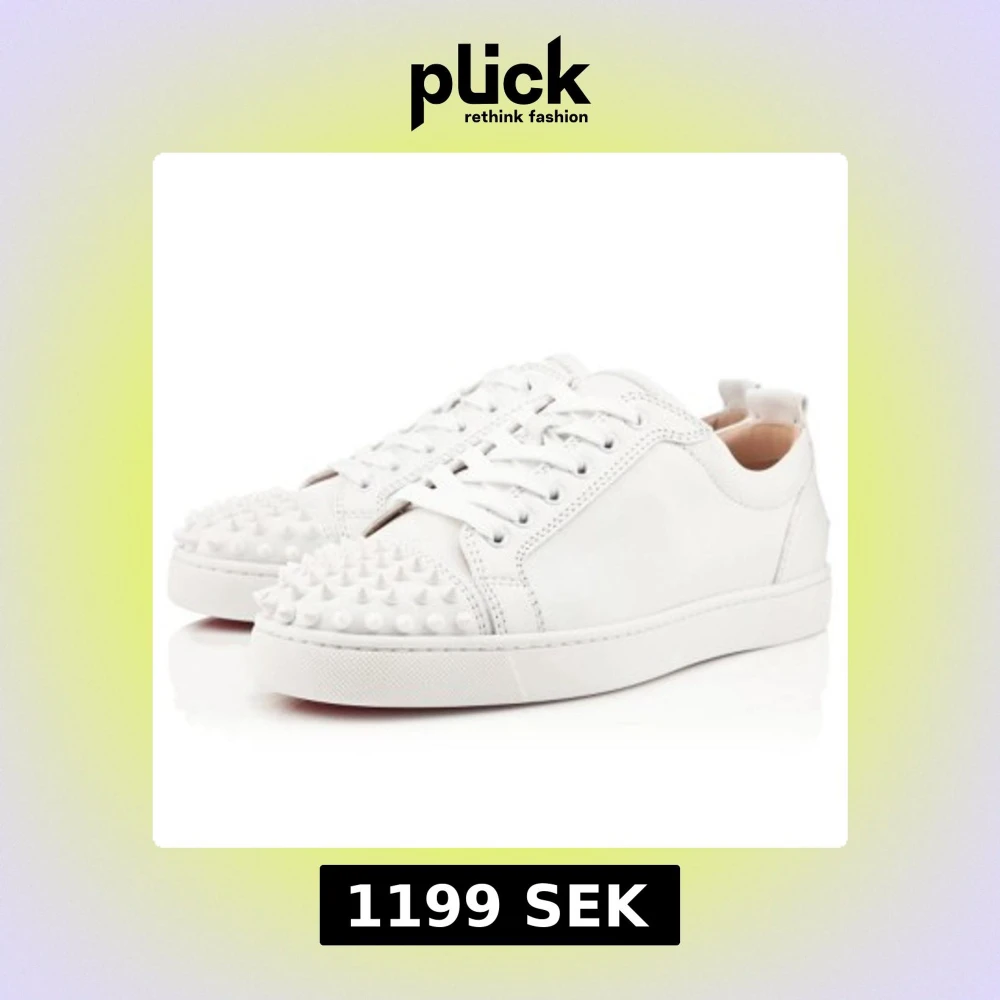 Snygga helvita sneakers från Christian Louboutin i skinn med coola nitar på tån. Klassisk låg modell med snörning och rund tå. Perfekta för dig som vill sticka ut med en edgy detalj men ändå hålla det stilrent.