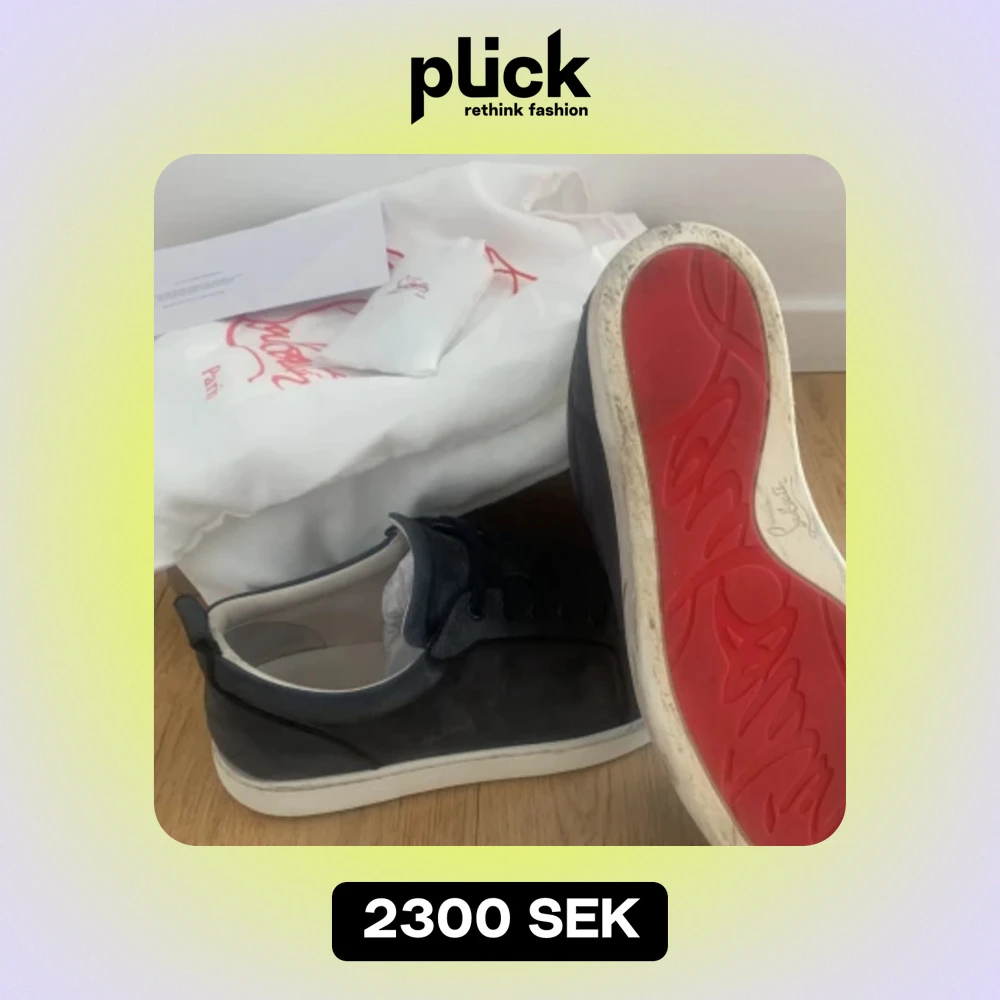 Skitfeta Louboutins med en läder/mockablandning. Storlek 43 och sitter tts. Skick 8/10, lite heeldrag och behöver göras rent, inga repor etc. Skor, box, dustbags och extrasnören medföljer. Skriv privat om du har några frågor! Pris ej hugget i sten.