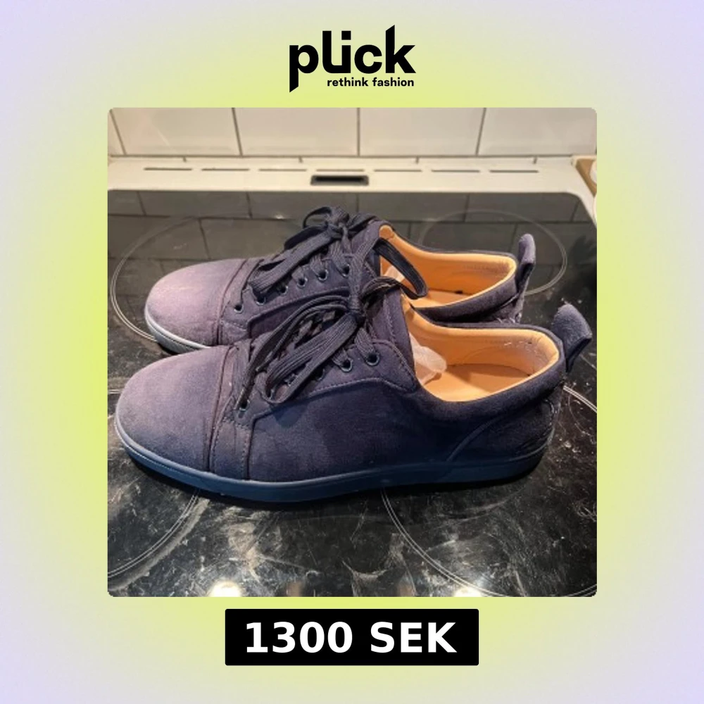 Skick enligt bilderna, mörkblå louboutins utan spikar. Har inte påse eller något, bara skorna.